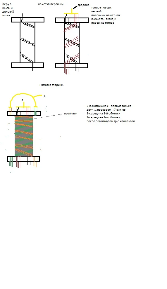 Да он сейчас перемотает нормально да и все, мотать то, 2х3 витка и 2х7 витков ...