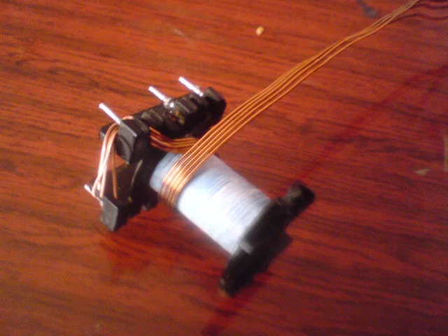 Думаю дело все таки в намотке, так как наматывал сначало 6 витков полупервички затем поверх ещё шесть витков второй полупервички, и так же со вторичкой только витков больше....