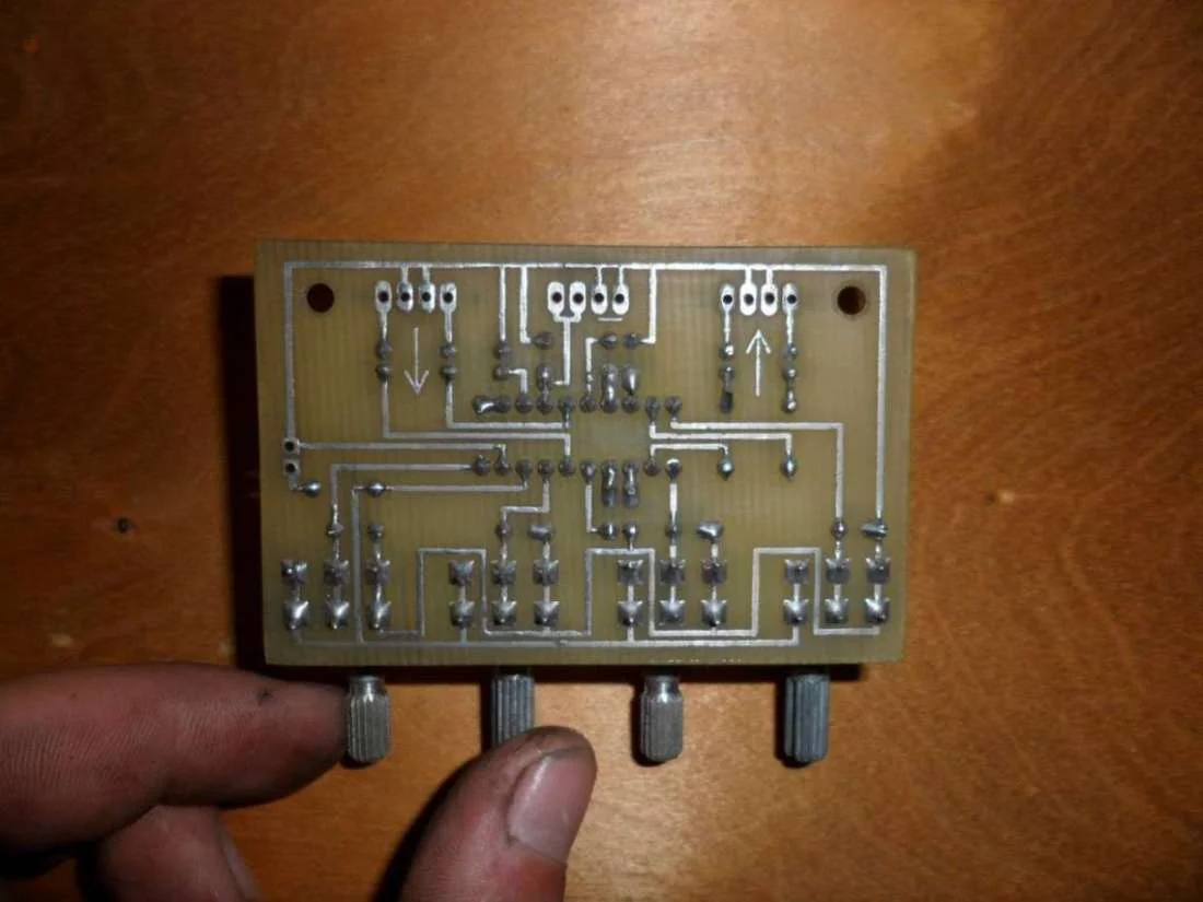 Если паяли с канифоль, смыть с платы начисто! Если кислотой, тщательно все промыть растворителем! Плата не очень хорошего плана разводки дорог (ток на углах будет спотыкаться:D)! По ищите на форуме другую ПП. Темы жеванная!