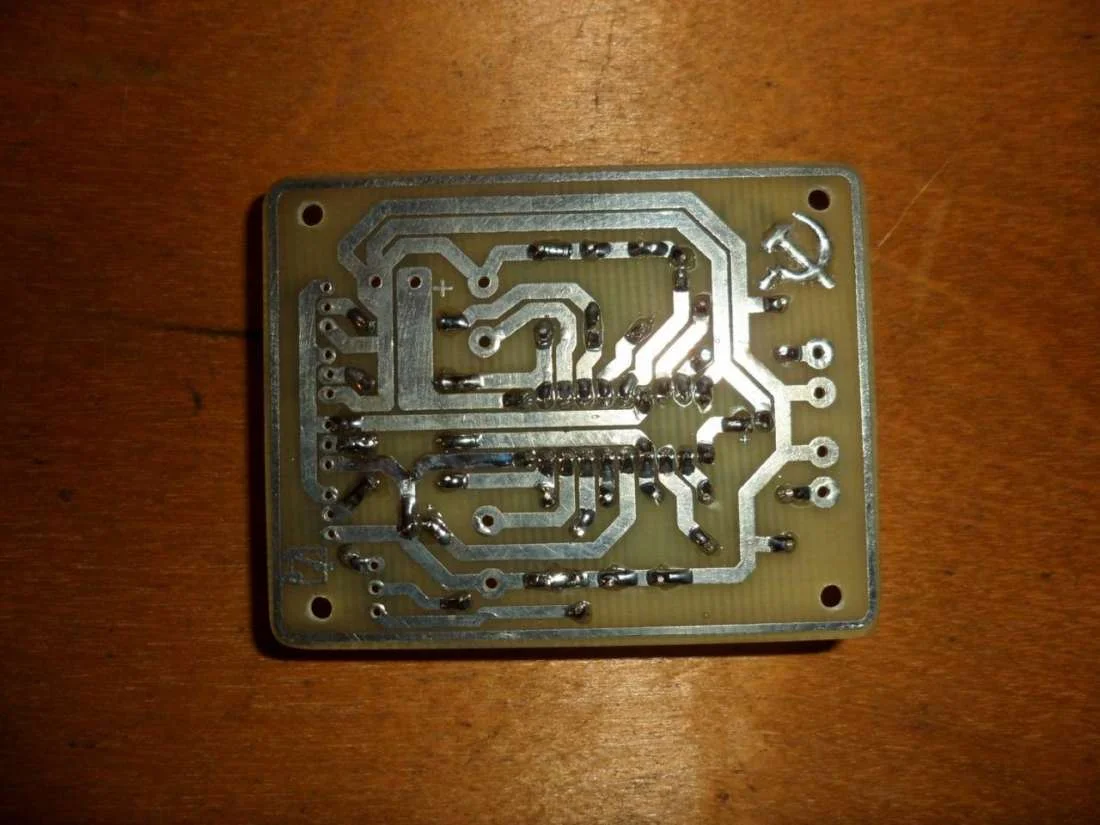 Во время пайки фрагменты канифоли остается на плате. Был случай у меня что из за нее было возбуждение МС. Смыть: растворитель марки 650, растворитель марки А, зубная щетка(б\у не нужная) и вперед! Намываете ПП до блеска, как тут -