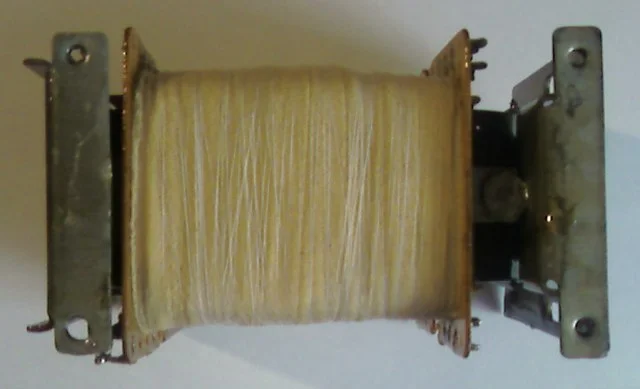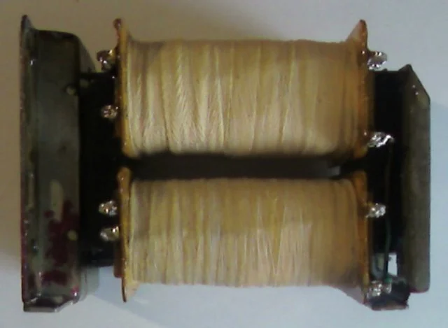 трансформатор намотан с заниженной индукцией - 1.2 Тл,на базе магнитопровода от тс-200,каркасы катушек изготовлены из стеклотекстолита.