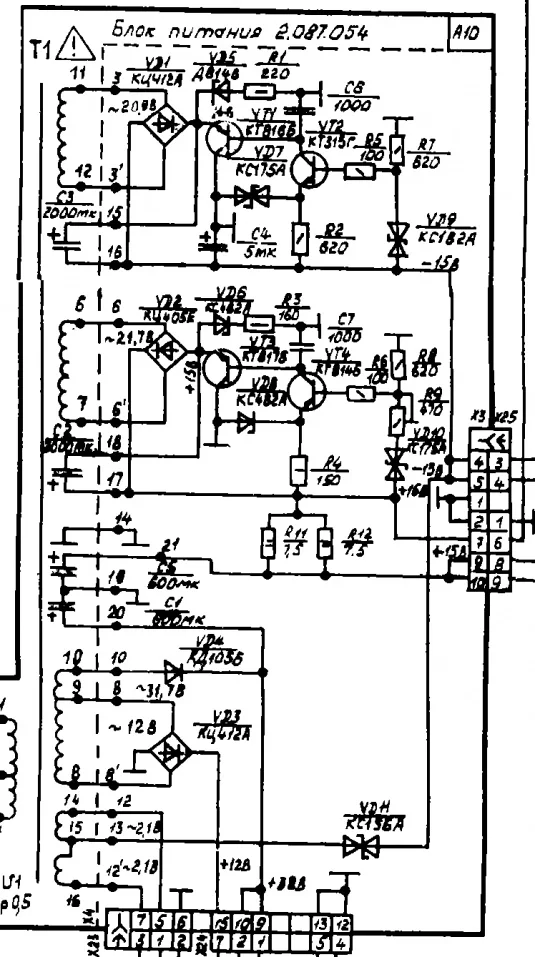 Там дб. обмотка на ~30В, две по ~18В, одна на ~12В и одна силовая на ~8,5В