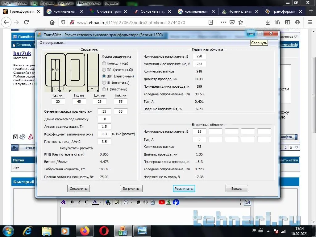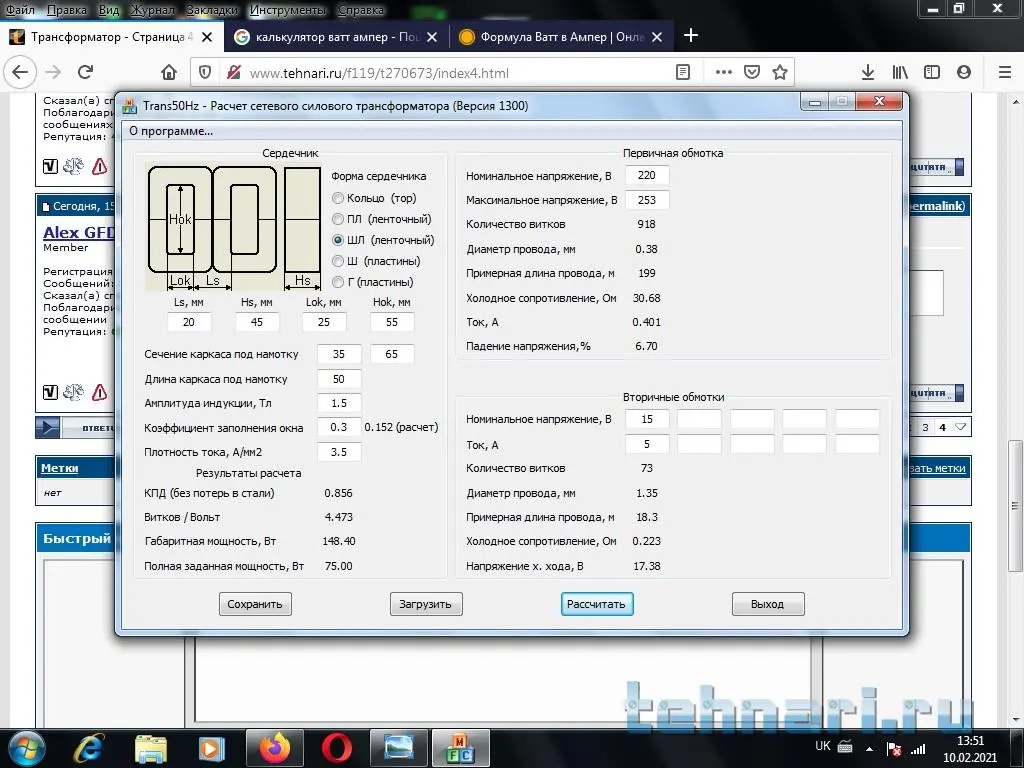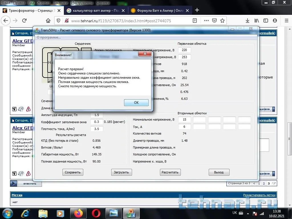 Сейчас речь о рациональном использовании первичной намотки до полной габаритной мощности , а чтобы ее расчитать - нужно в параметрах указать потребл. близкую к габаритной. Потом сечение пересчитаем исходя из ранних постов .