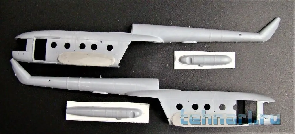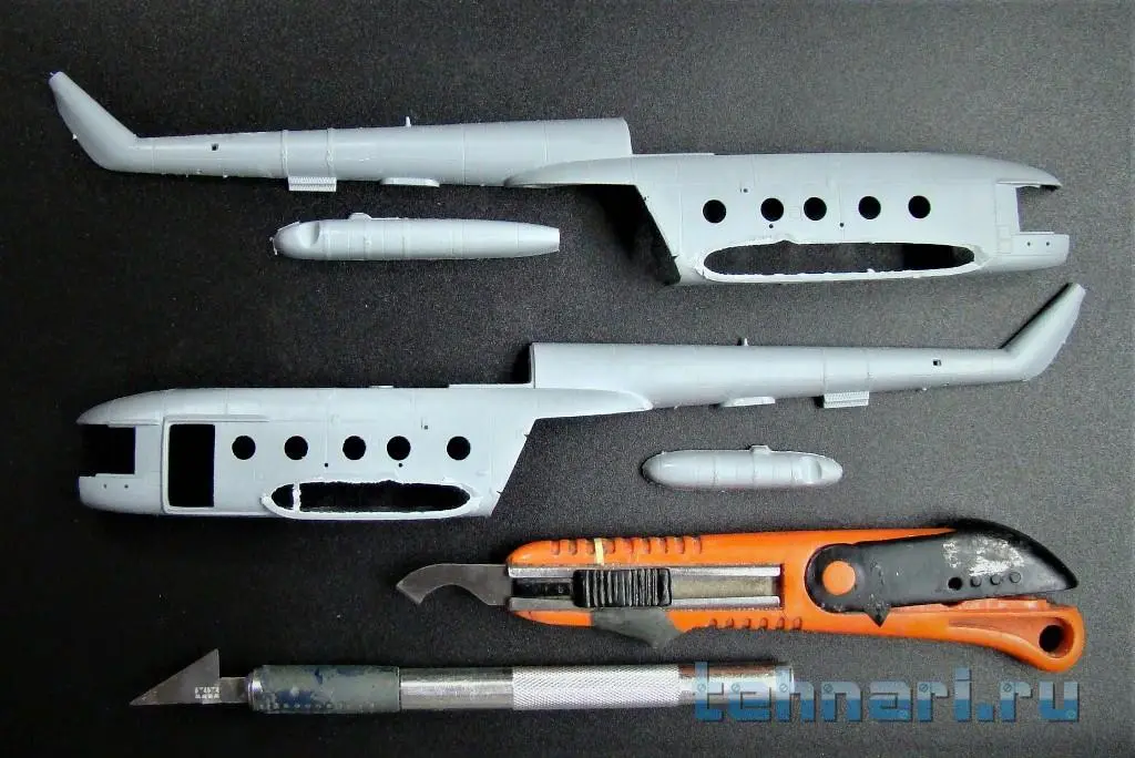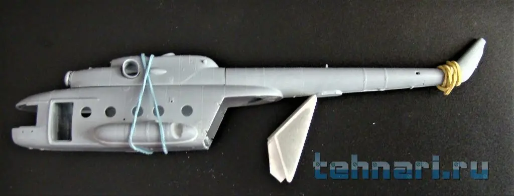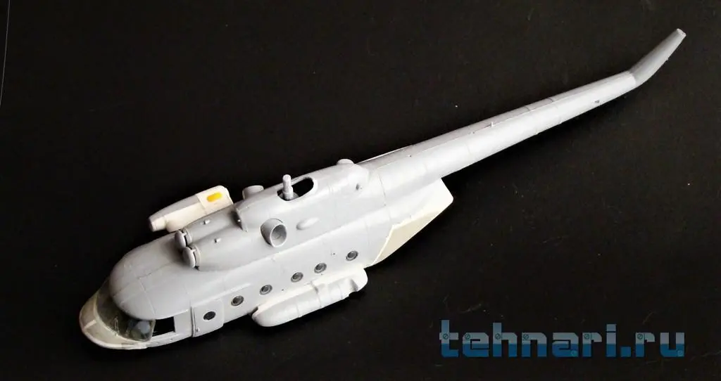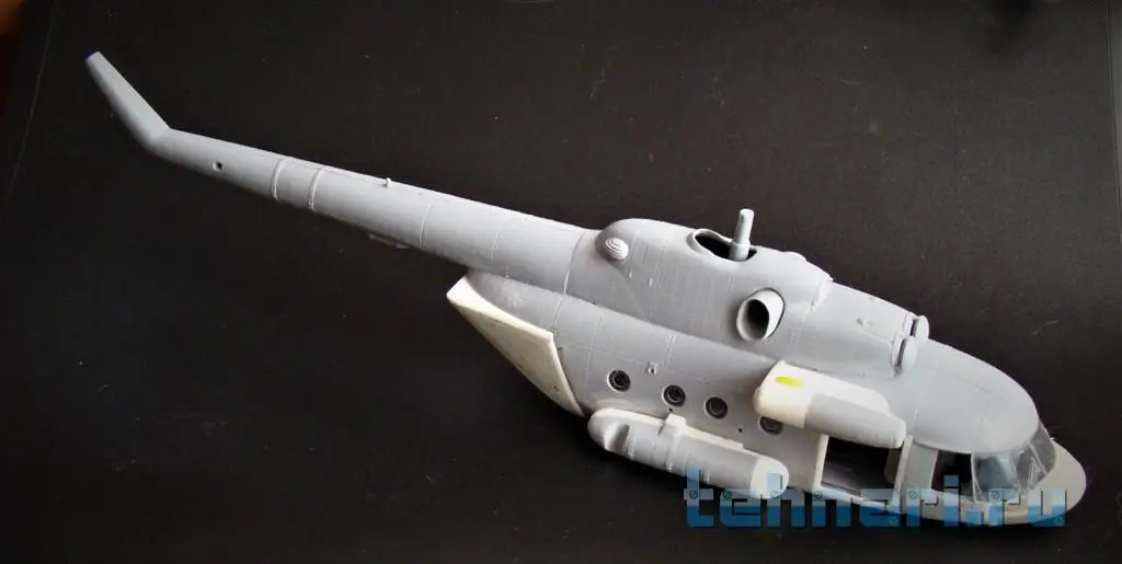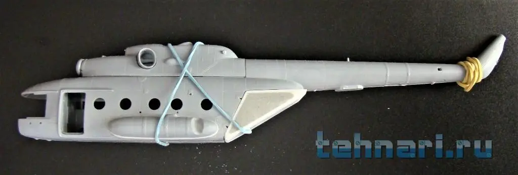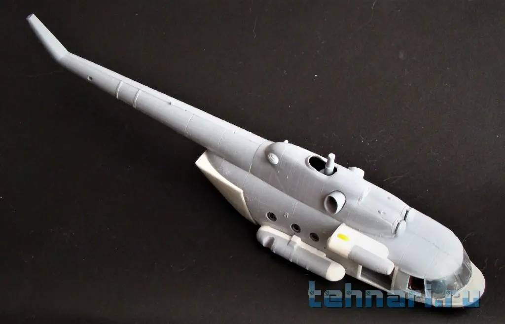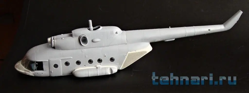 Продолжаю работу с "клюворылыми"(с дельфиньим носом) моделями вертолета. Собрал кабину Ми-8АМТШ , после чего склеил половинки фюзеляжа.