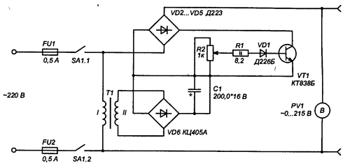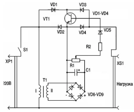 Это схема из статьи Башкатова "Вместо ЛАТРа...транзистор" Радиолюбитель №2, 1998г.