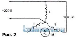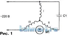 так как двигатель и так включен в однофазную сеть уже потеря мощности и обмотки включены последовательно и не на 380в а на 220в получается еще большие потери полезной мощности. Ну вроде как я понял так.