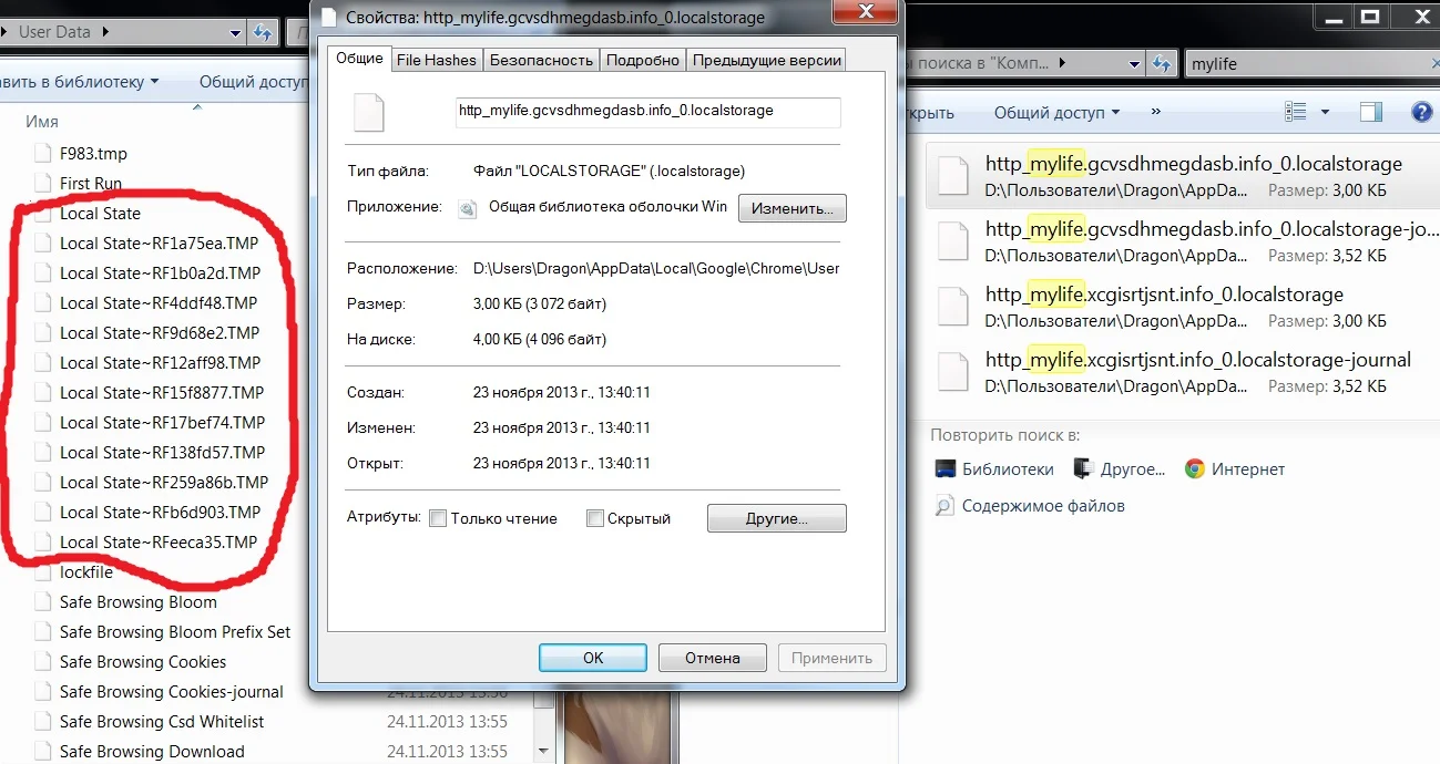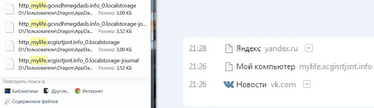 Решил вручную найти эту ересь, забив mylife из истории в поисковик получил адрес папки с гугл хромом (приложение 6)