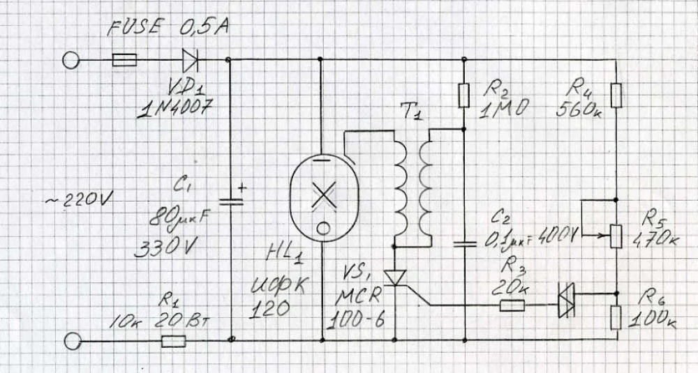 я тут нашел у себя лампу ифк 120 погуглил и нашел кучу одинаковых схем но без звуковой активации а я хочу что бы вспышка была синхронизирована со звуком как ээто сделать?