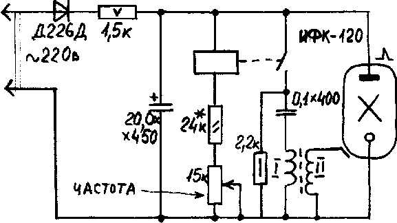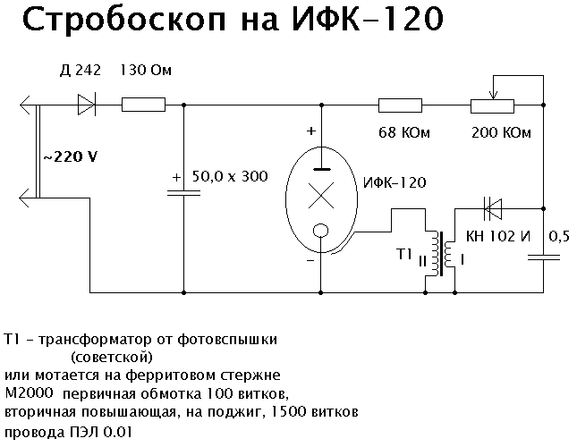 мне кажется на диодах получится стробоскоп с недостаточной мощностью для освещения целого зала да и хотелось бы найти применение ифк 120 нечего просто валятся в коробке=)