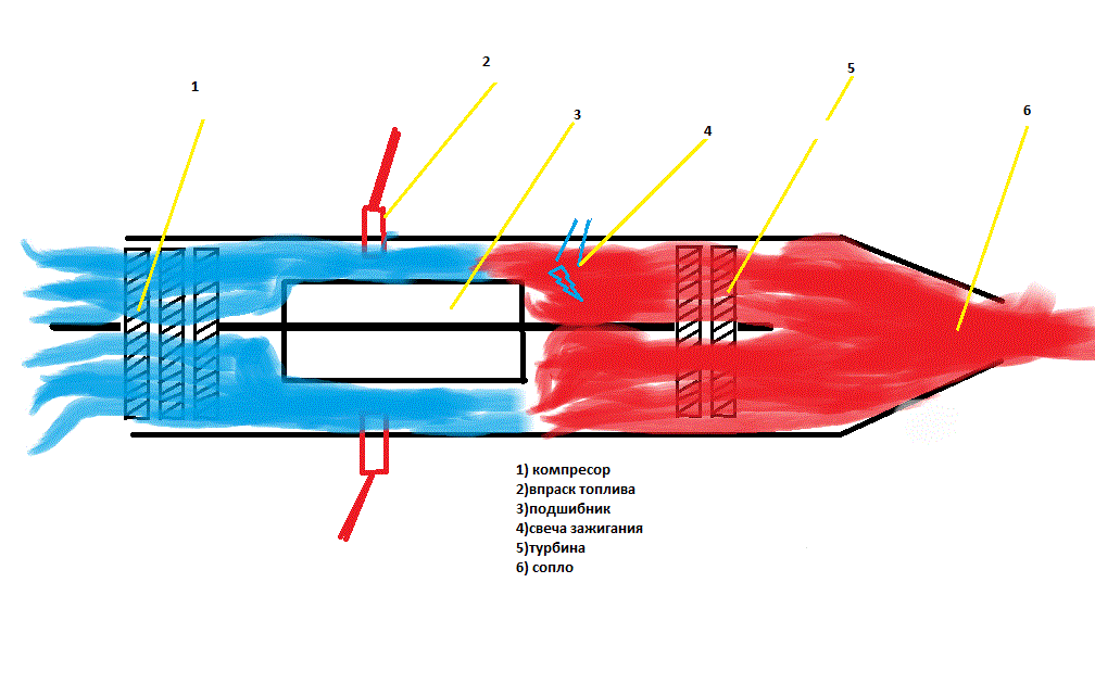 Фраза о раскручивании крыльчатки компрессора пламенем меня крайне удивила. Потому и интересуюсь, каким образом намереваетесь "раскрутить пламенем" компрессор до нескольких тысяч оборотов в минуту? Что за пламя, откуда оно берется, на что воздействует?