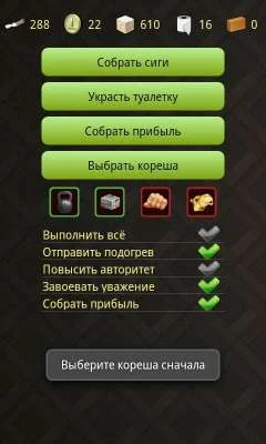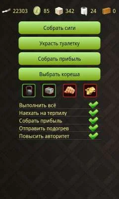 Возможности: сбор папирос, воровство, сбор прибыли, отсидка в тюрьме.. и так далее.. в общем практически все возможные действия, за исключением анимации.