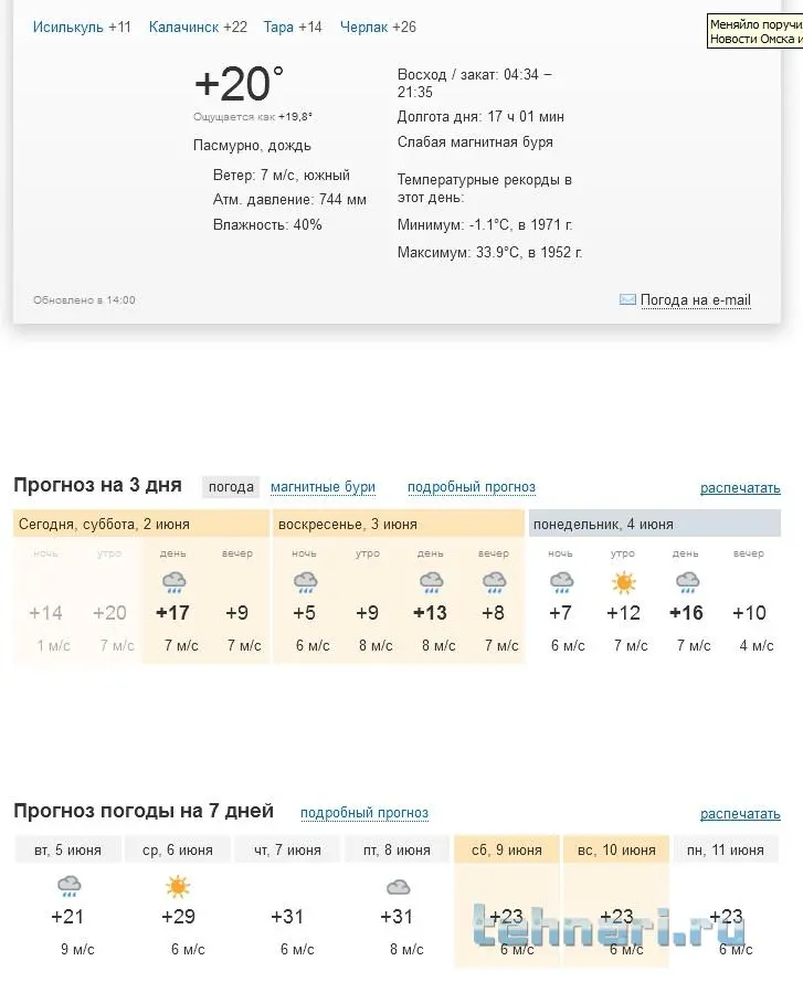 У меня в виджите прогноза погоды установлен Питер, Владимир, Киров, Муром и Д. Так вот а Питере, по сравнению с остальными, реальная жара. :)