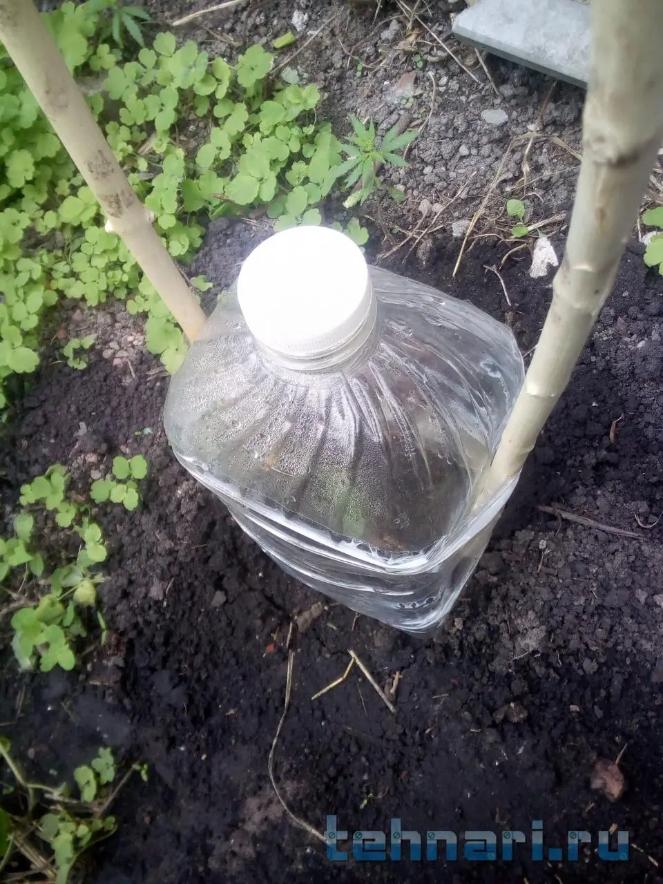 Сегодня +13°С, но я обрезал 5-литровки от спирта, привязал палочки и надел на огурцы. Огурцы довольны.