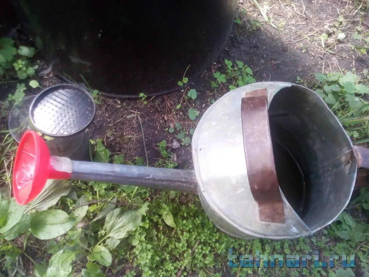 А я нашёл древнюю жестяную лейку, как ни странно, с полиэтиленовым разбрызгивателем. Он был расколот, заштопал проволокой и залил поверх пистолетом. Льёт просто великолепно. Современная пластиковая достала, регулярно забиваясь, эта удобнее и надёжнее. На улице уже сумерки, начало одиннадцатого, завтра при солнце сфотографирую и покажу ))