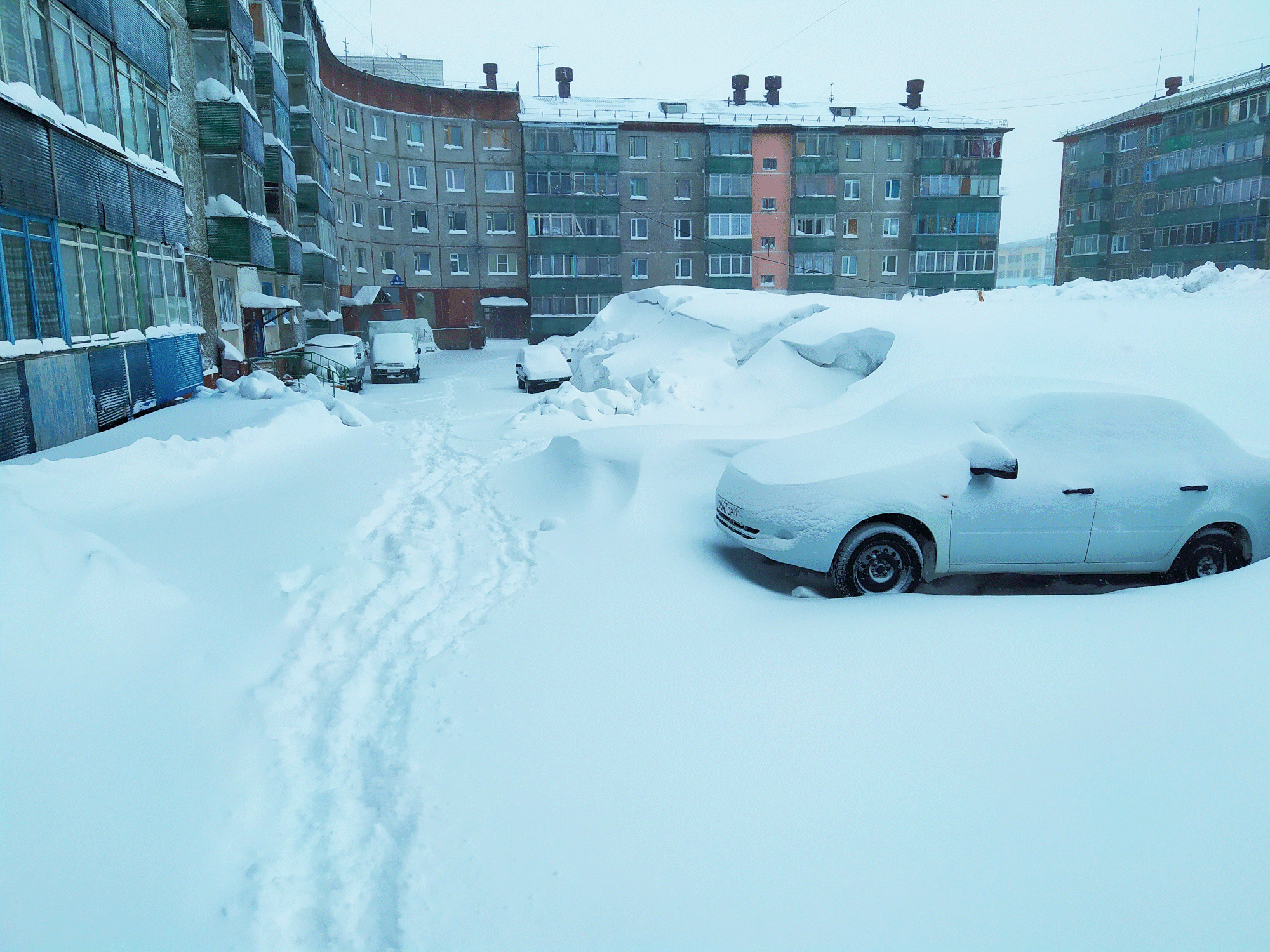 Потеплело манёхо, однако ... С крыши обвалилась такая глыба, думал балкон мне разнесет. Чистить должны, а все на карантине. Хорошо хоть трактором сделали проходы в снегу ... :)))