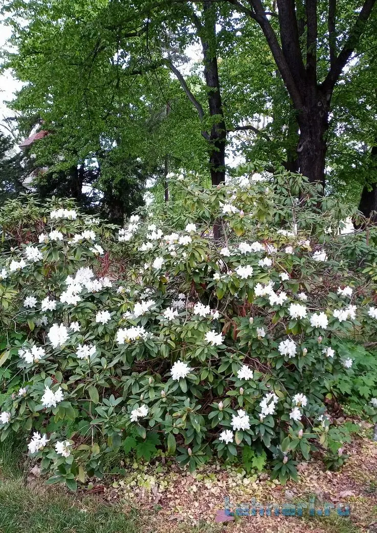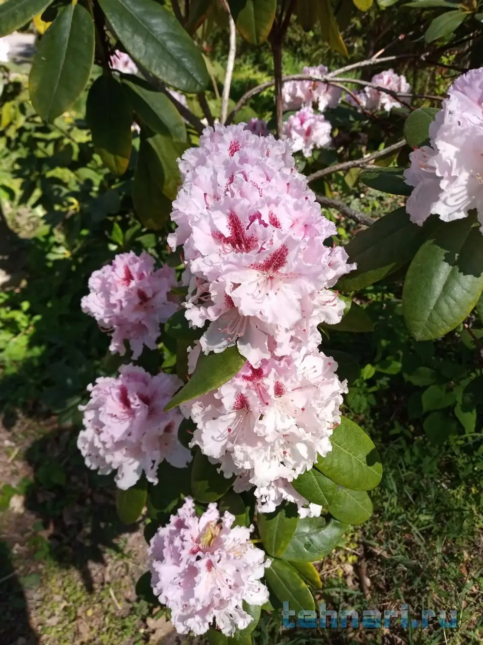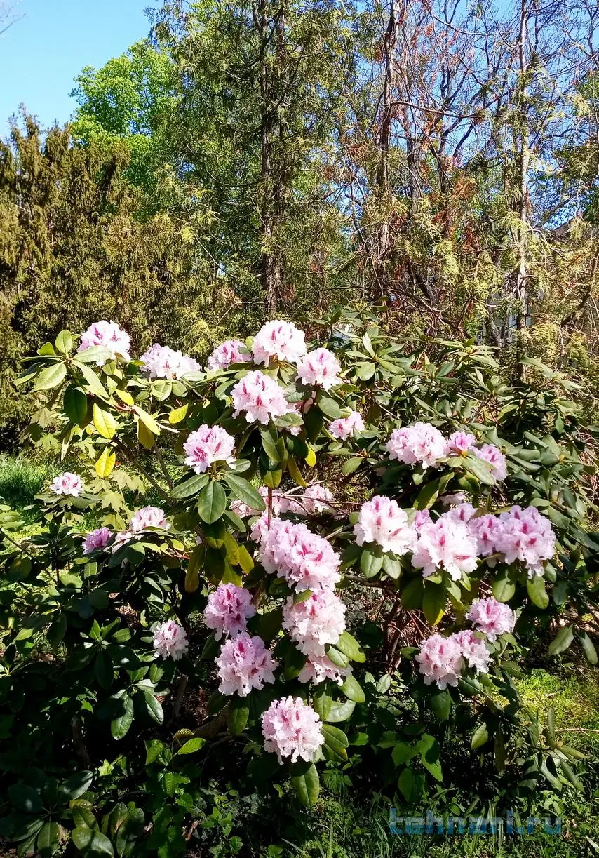 Рододендроны распустились, болезные. И да, газонокосилка на аккумуляторах.