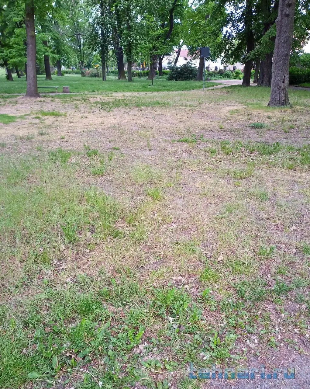 Ночами 6 - 8, днем до 20. Ходят черные тучи, погромыхивает гром. Но дождя нет. На фото: это был газон, высох, в тени пока еще живой.
