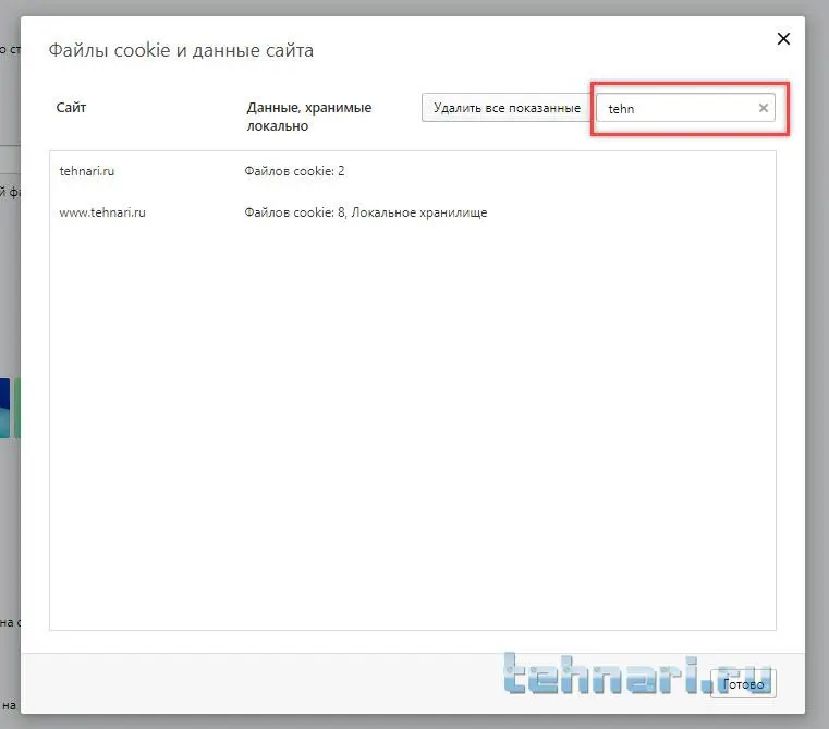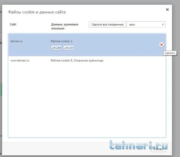 В строке поиска вписать название сайта на кортом надо удалить куки: