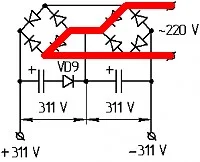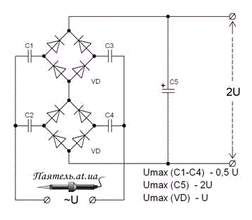 Совершенно верно, только электролиты не советую использовать. У меня в конце 70-х уже летала фольга по хате ...А почему просто не сделать на паре диодов и паре кондеров?