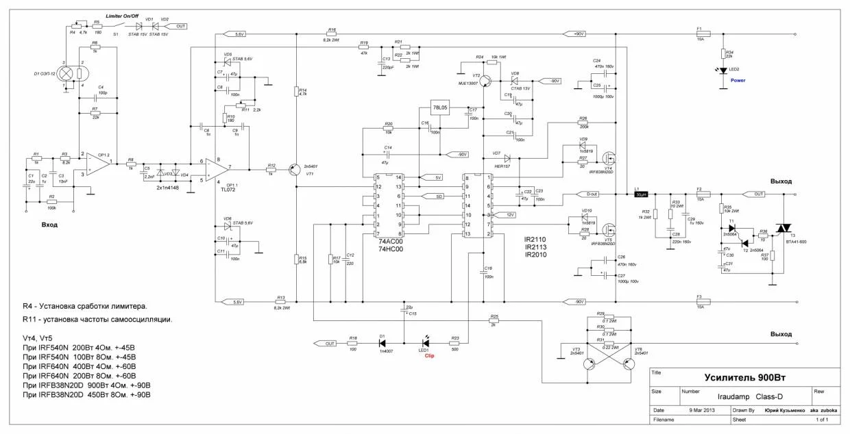 хочу сделать усилитель D класса !!! я делал " ланзар " 200 ват , ОМ2 " марк" 100 ват, - это классные усилки но под саб в авто это не то потребление большое!!! вообщем на другом форуме нашёл вот что и буду делать этот или может кто делал дайте схемку с ПП ( буду благодарен!!!) ТАК !!! не стесняемся а подключаемся к этой темке и дружно трудимся!!!:tehnari_ru_942: