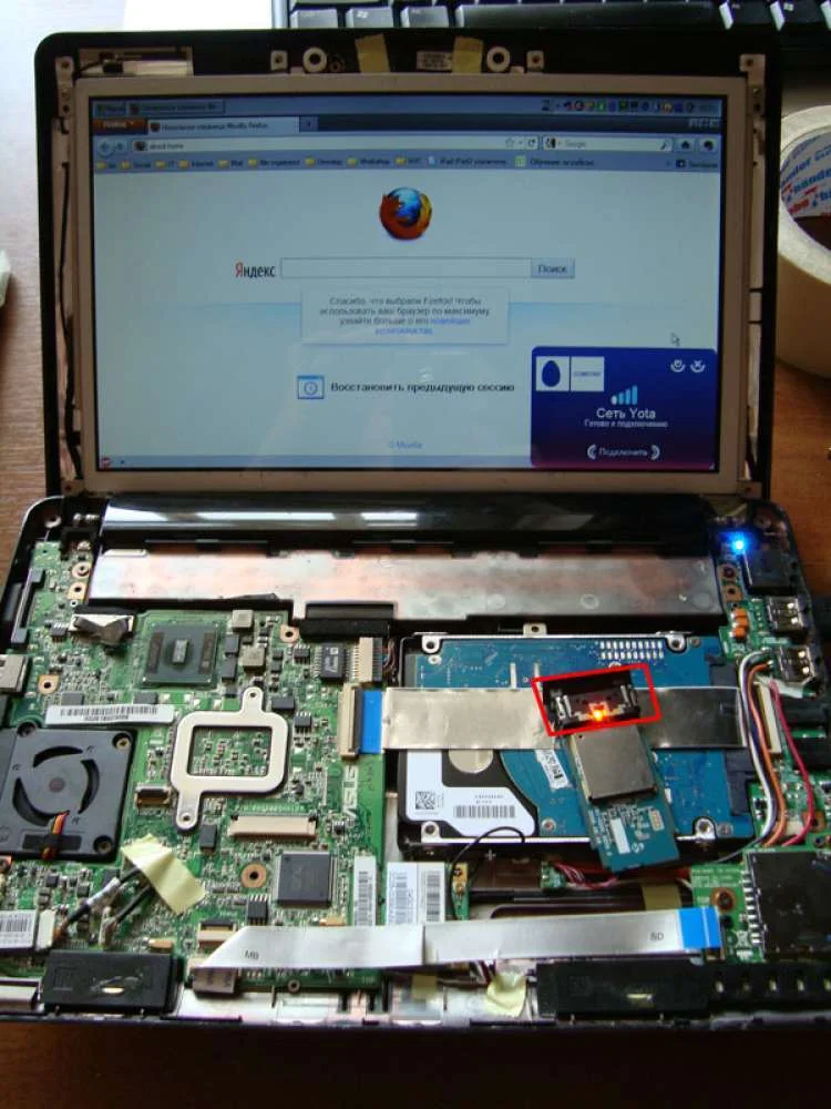 Вскрываем корпус(Я его давно уже вскрывал и думал, чтоб туда внедрить... насчёт модема сообразил недавно) и видим свободное место рядом с hdd... прям под модем...