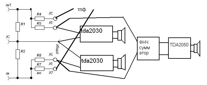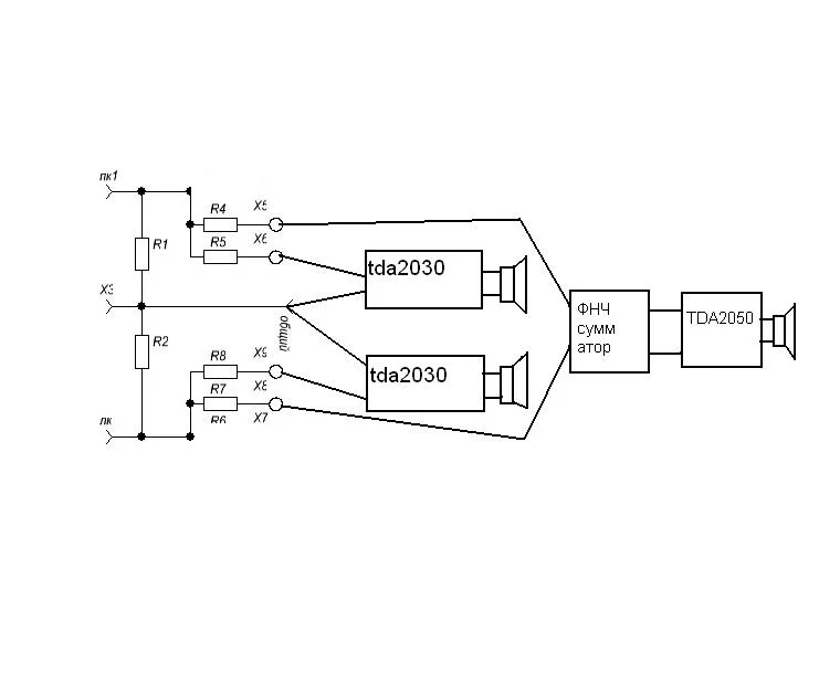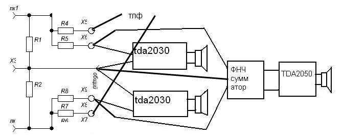 Вот, накидал блок схему, проверьте пожалуйста, усилитель для наушников рисовать не стал, но думаю он подключается аналагично tda2030.