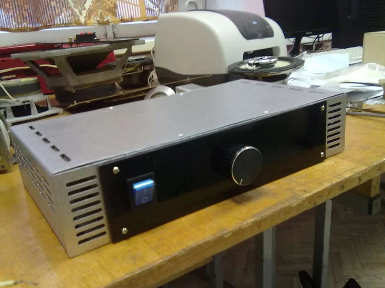 Выскажу и я своё мнение касательно дизайна, регулятор по центру и правда помоему не смотрится, хотя тут кому как нравится:D Но вот кнопка включения реально не катит, если платят нормальные деньги то лучше было бы сделать нажимающуюся круглую кнопку(стыковалась бы с ручкой), касательно покраски - помоему скучно и не побоюсь этого слова убого:D сам конечно так ровно не покрашу, но хорошо бы что нибудь поинтереснее и вообще лучше металл бы оставить, вот кпримеру в последних двух фотках производители классно сделали:D Ну и винты на передней стенке? брось:D В общем если усилок будет стоять там где его не видно то нормально, но если на видном месте то я бы постеснялся такой поставить:D Это сугубо моё мнение и прошу извинить если что то не так сказал или что то показалось резким:D