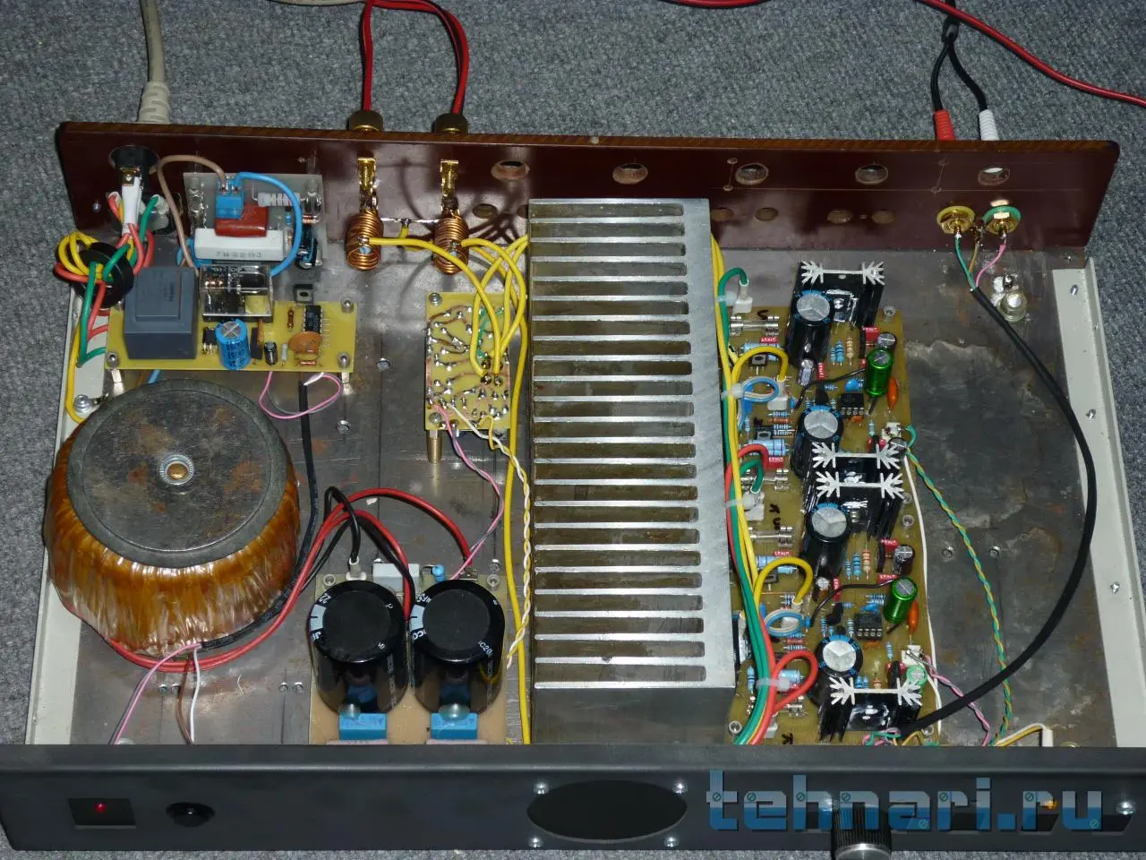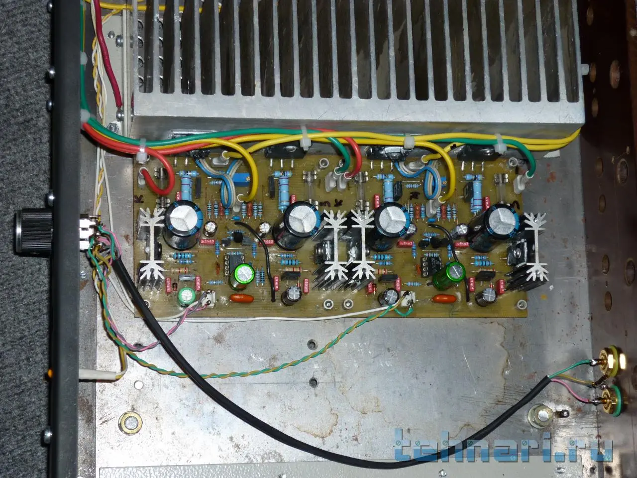 Всем здрасте. Это снова я. Вот , значить, и шестую версию А. Лайкова сподобил. Скажу честно, что разницы с пятой версией особо не прочувствовал. Звук весьма не дурён, воздуха много. Ток покоя 120 ма. На выходе Тошиба 5200 + 1943. С ОУ заморачиваться не стал ; проставил то, что было , т.е. кр 544 уд 2 а. Даже балансировать не пришлось. На выходе 0. Включение - выключение квазисенсорное. Собрал на 561 тм 2. Узел защиты АС бриговская. Она мне нравится, и я её любить, потому как безотказная. Ещё на борту имеется узел плавного пуска. Штучка как бэ не лишняя. Полезная штучка. На счёт корпуса скажу следующее : корпус мне предоставил заказчик. Не мой это корпус. Я только ливер делал. Ну вот как то так. А теперь по традиции танец :grud: