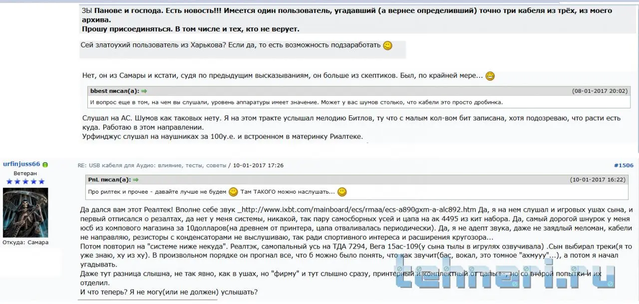 Занесло меня, как то, на удифильный форум, где люди обсуждают кабели стоимостью = всей моей самосборной системы. Ну и терли они там вопрос влияния ЮСБ шнурков(для цапов).