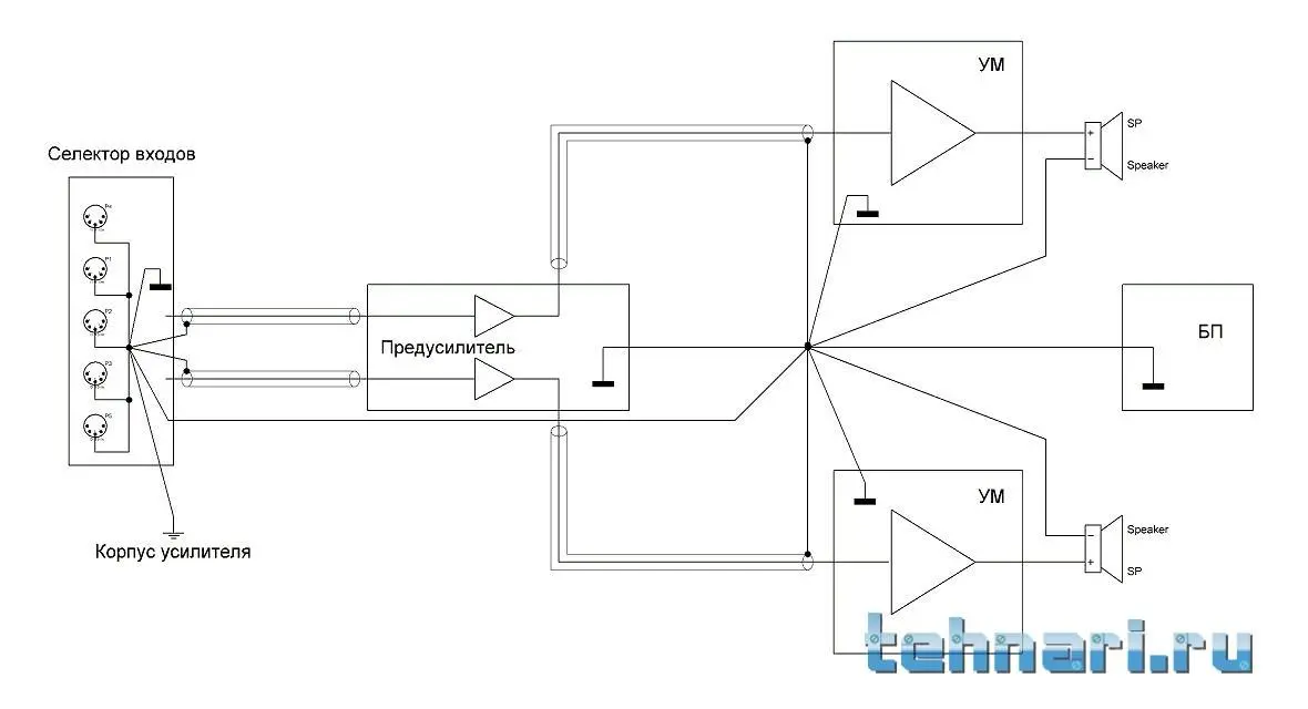 Я это говорил про рисунок ваш как раз ) Мне немного непонятно соединения нарисованы... земля от входа с сигнальными проводами к преду подходит? А из преда в звезду?