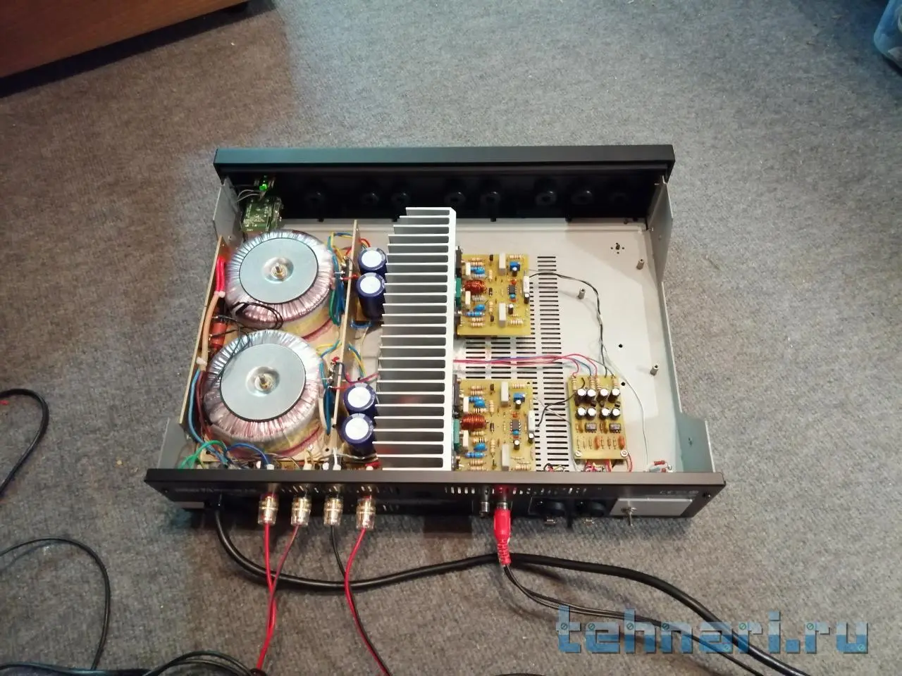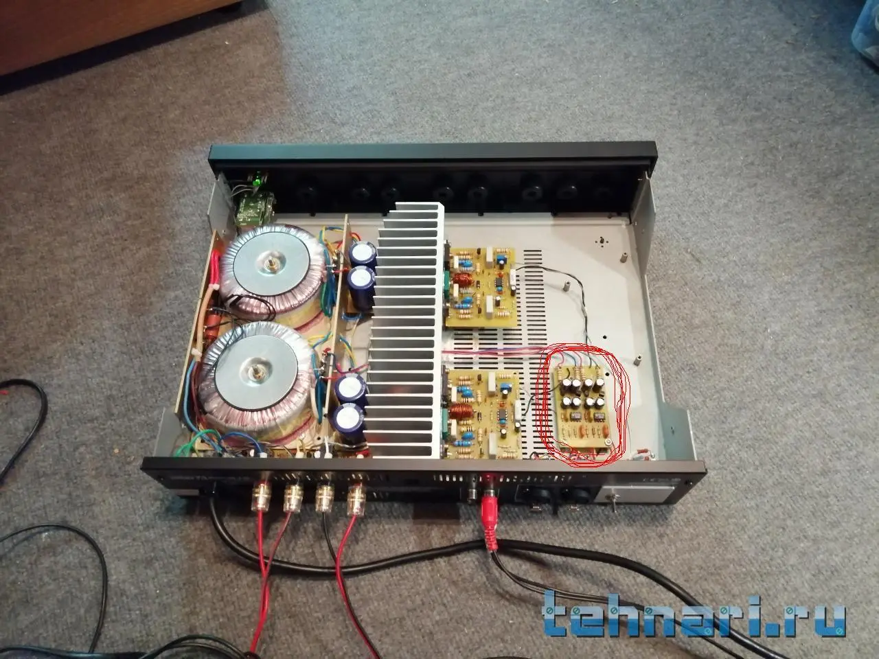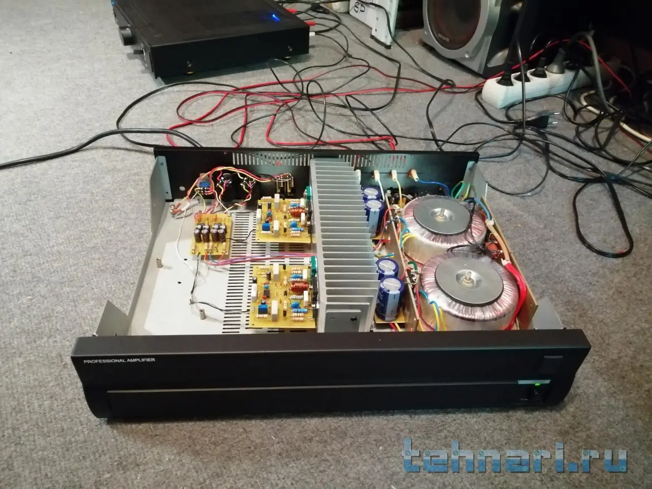 Ну вот и закончил я работу, по этому усилителю. Делал двойное моно, два входа RCA, два входа XLR и два входа TRS. ОУ я применил NE 5534. Транзисторы Тошиба ( настоящие с разборки ). Два транса 120 вт, ёмкости в блоке питания 6.800 х 50 Корея ( Samwha ). Корпус от трансляционного усилителя Amtel 60. Кажется так. Два блока защиты АС от Брига. Это проверенная схема, которую я использую во всех своих усилителях. И она реально спасала мне АС, во время аварийных сутаациях. Всё запустилось и отстроилось сразу. Вообще без проблем и косяков. На выходе усилителей 0.9 мв и 0.0 мв. Шум - фон отсутствует как вид, звуком доволен .