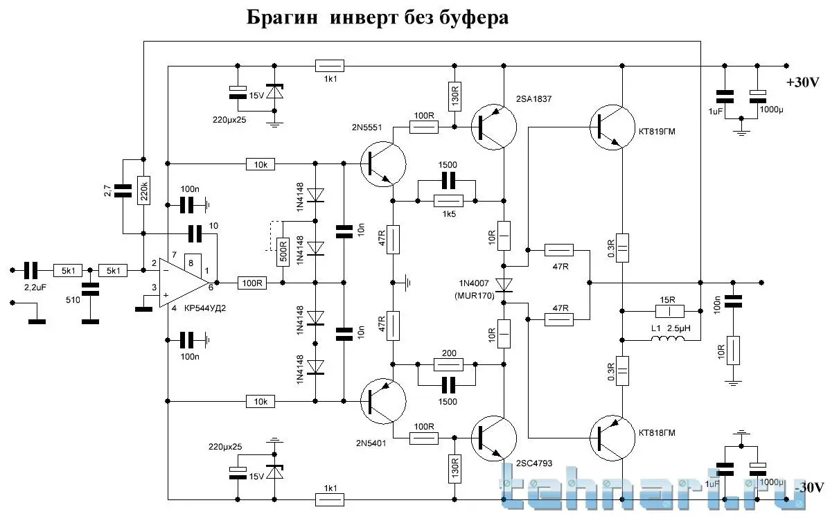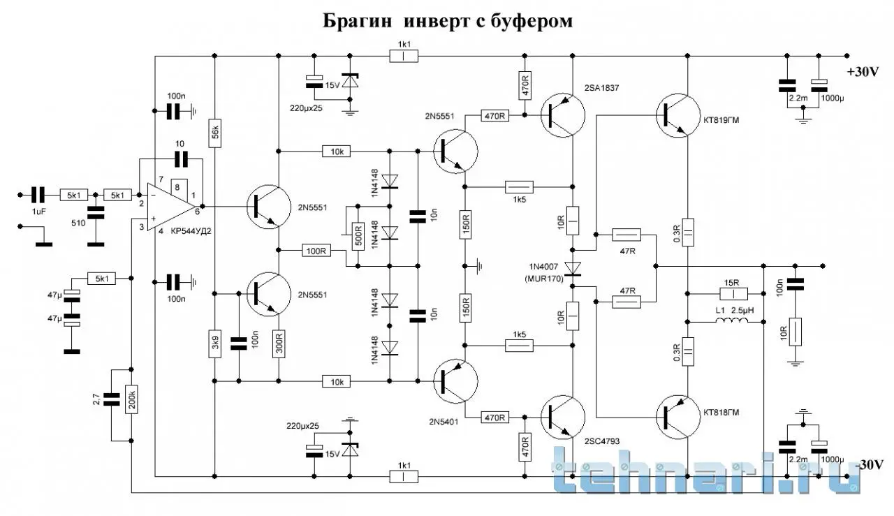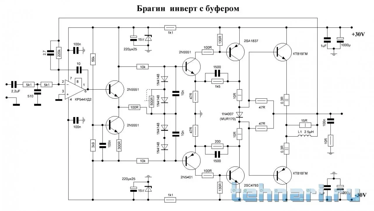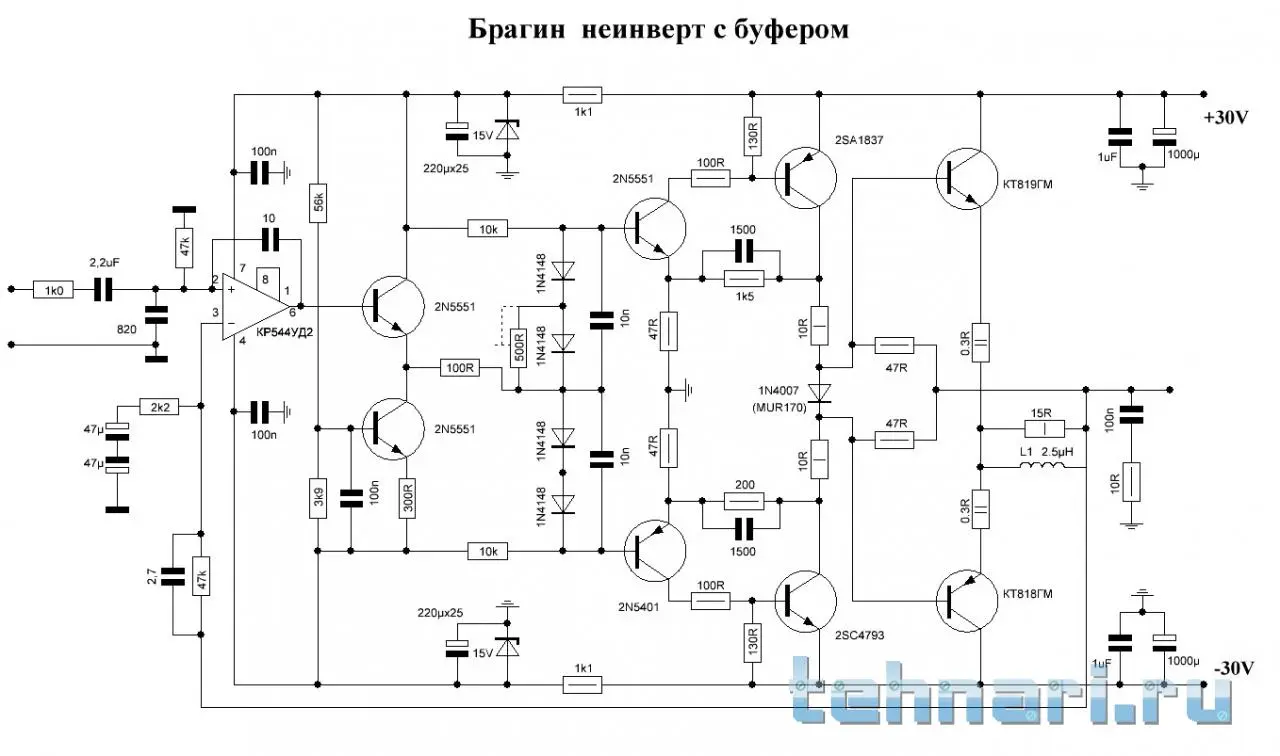 Рождение происходит в муках! А в этом усилителе с настройкой все отлично. Единственное что нужно, это собрать его без ошибок. Я этот усилитель собирал много раз. И никогда не было проблем. Иногда , при использовании быстрых ОУ, может и засвистеть. Тогда нужно подбирать коррекцию. А если применить ОРА 134, то работает сразу по оригинальной схеме. 4 диода обязательно нужно ставить. Так проще и быстрей настроить ток покоя предвыхода. Все вышесказаное относится к оригинальной схеме усилителя Брагина, из журнала Радио за 1987 год.