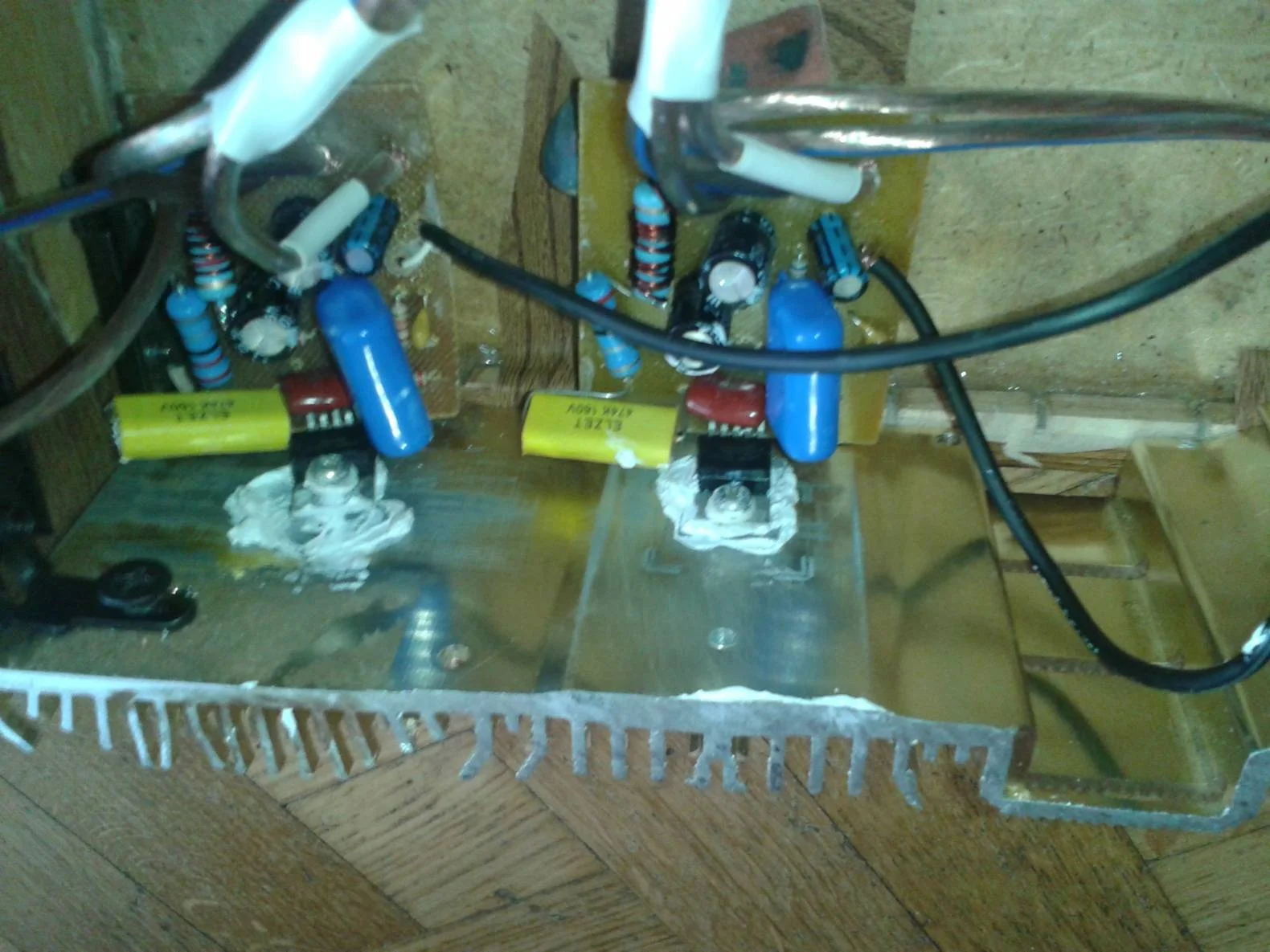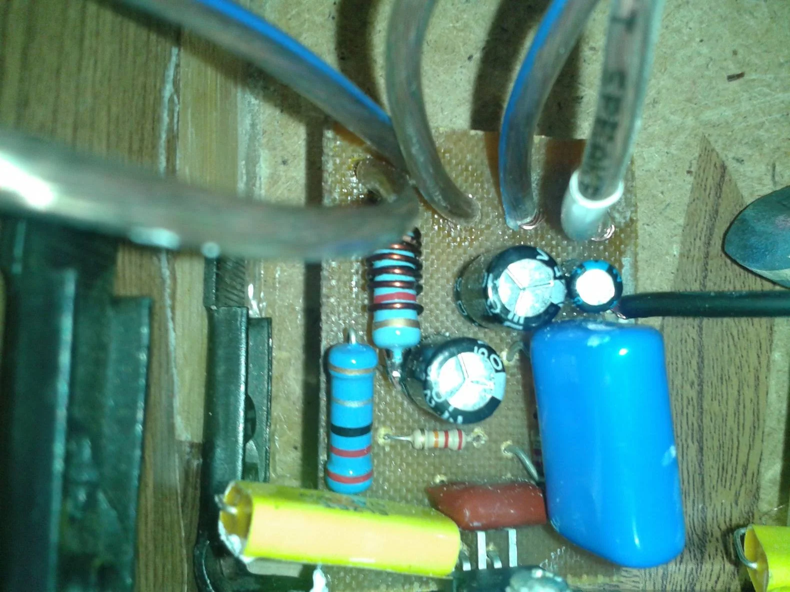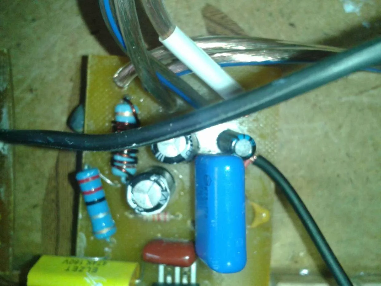 Проверь номиналы деталей, прежде всего проверь коричневый резистор - его сопротивление должно быт 2.2 Ома, измерь мультиметром.