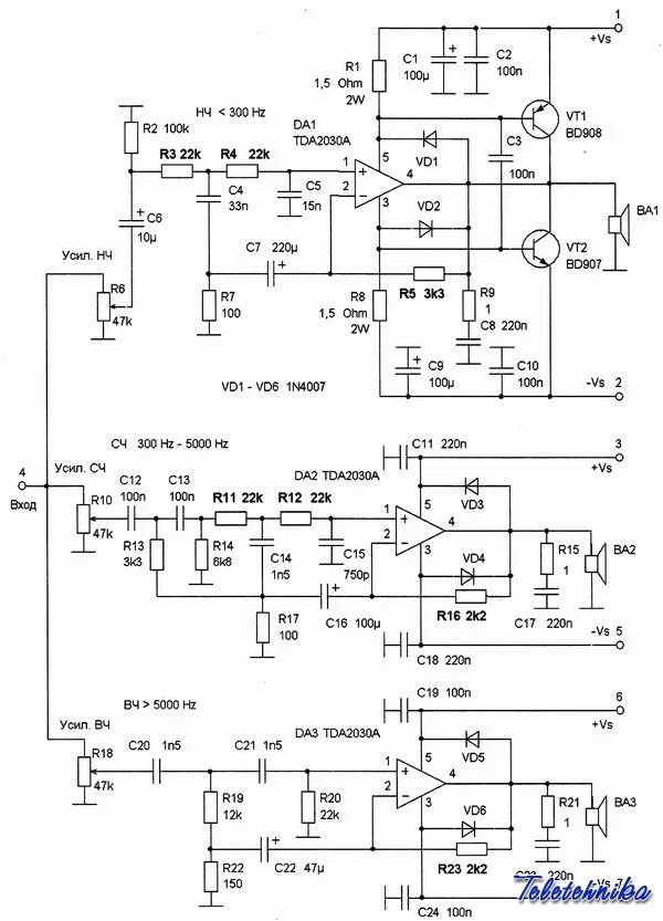сабовый канал можно взять из схемы что дал Саня, (кроме ФНЧ есстественно), или же заменить на TDA2050