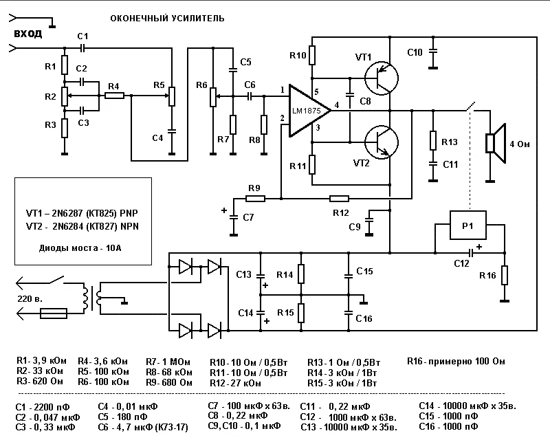 Андрей, у меня вот резисторы стоят в БП,щелчка при включении нет,а при выключении он есть и тока в правом канале...почему так? ИМС TDA2050 схема СКИФа...