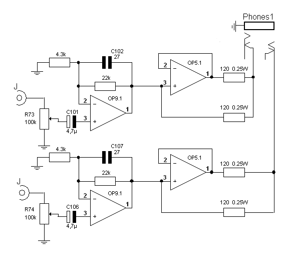 Совершенно верно. Только большинству Децибеллы мало о чем говорят. Сказали бы просто, что 500 мВ для наушников достаточно усилить в 4 раза и получить 2 Вольта. Для этого нужно уменьшить резистор 22 кОма до 3 кОм. Напряжение на R8 равное напряжению на входе ОУ в сумме с напряжением на резисторе ОС как раз составят 4 Вольта.Про снижение КУ схемы я уже говорил в самом начале обсждения: 10-12 db оптимальное значение