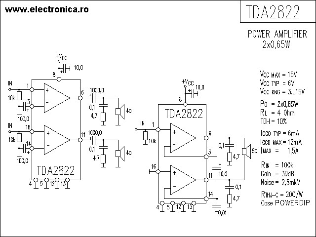 и скорей всего микра бракованоя, среди TDA2822 не редкость.