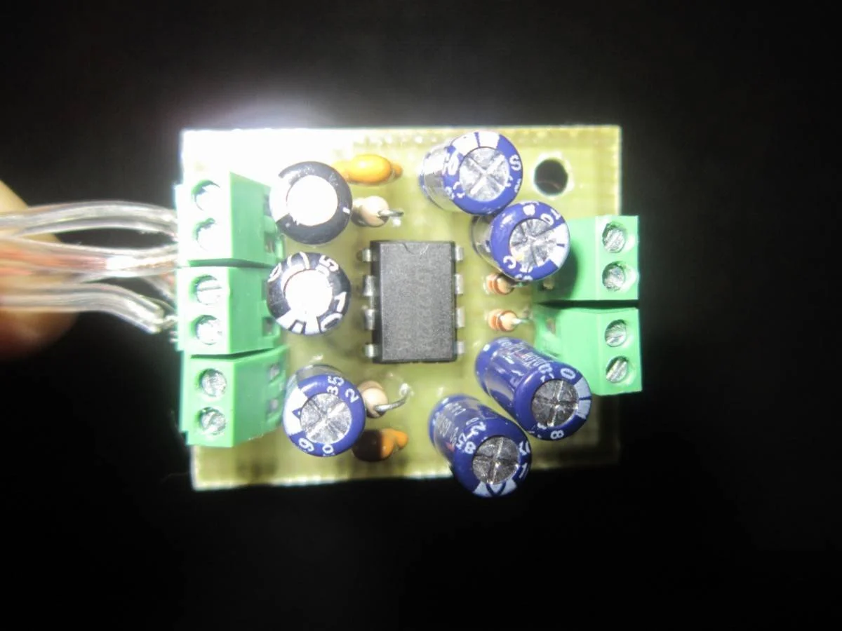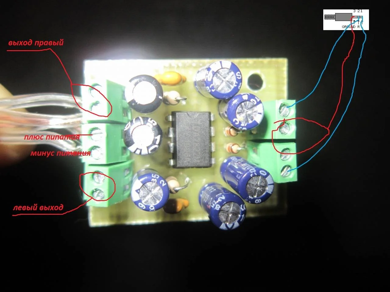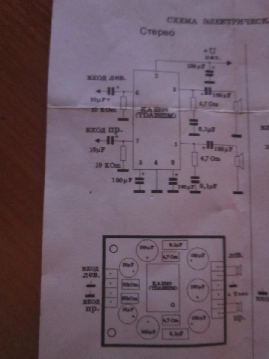 короче говоря хотел собрать усилок для наушников но стало как то в падло и я купил усилитель на микросхеме тда2822 подлключил всё по схема а оно не роботает просто когда вкл. всё и подключаю наушники то они тихонько шиплят риплят и всё!что мне делать?