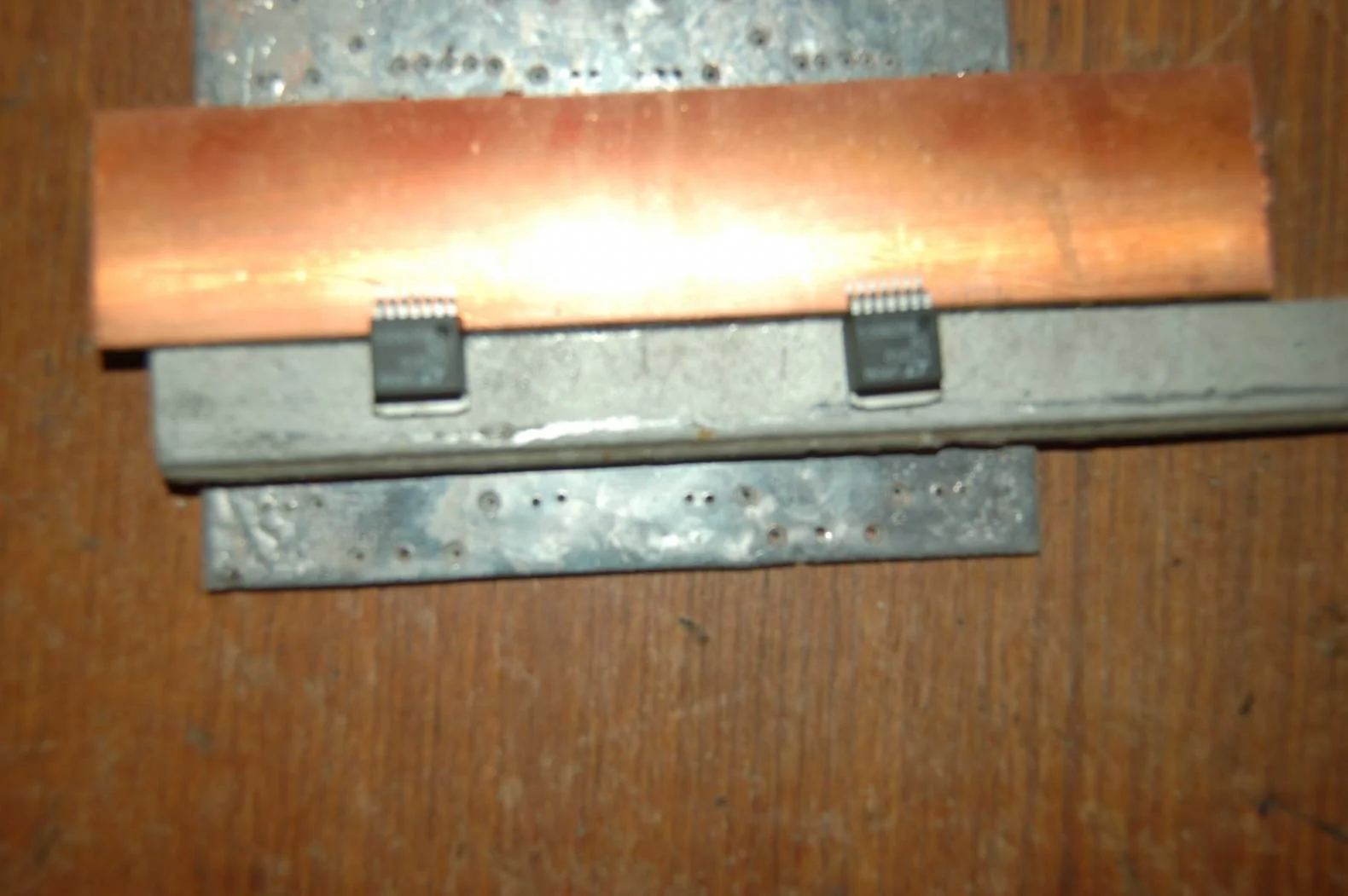 Изготовлю вот такую платку , пойдет вторым этажом над общей, к ней припаяются микросхемы, а корпуса лягут алюминиевую пластину(радиатор)