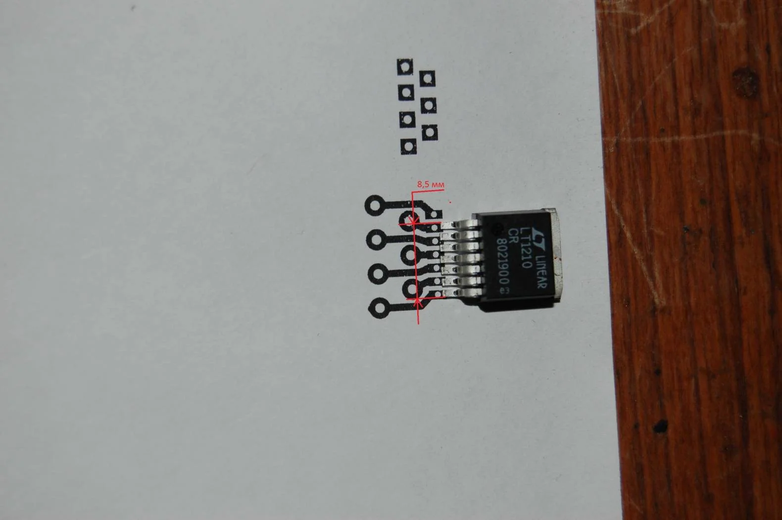 Распечатал прикинул, макрос получился немного шире микросхемы. Что то не могу разобраться как в спринте отредактировать этот макрос - расстояние между ножками уменьшить что бы вписаться в габариты 8,5 мм