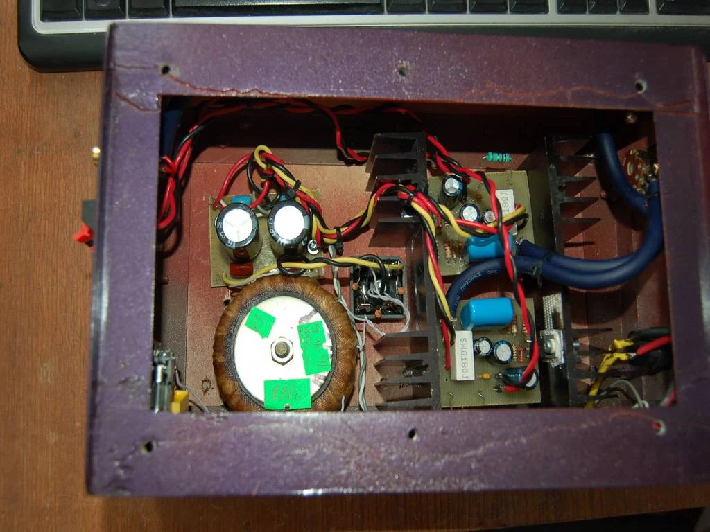 Ну а из корпуса от Militano сделал усилитель для друга на двух TDA2050(ИТУН) , питание 15В двухполярное , конденсаторы по 10000мкф 25В в плечо. Сейчас доделываю установку защиту АС и врезаю в дно корпуса небольшой вентилятор для продувки воздуха их корпуса, хотя радиаторы и так почти не грееются, но пусть будет.