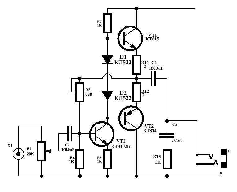 Вот одна из цитат "На рисунке приведена упрощенная схема транзисторного КИТа, одного канала, без БП, схема простая, но очень эффективная. Транзисторы работаю в режиме АВ, без искажений "ступенька" . Схема и конструкция позволяет проводить различные upgrade как схемотехнически, так изменением типом элементов ,например установкой германиевых транзисторов"