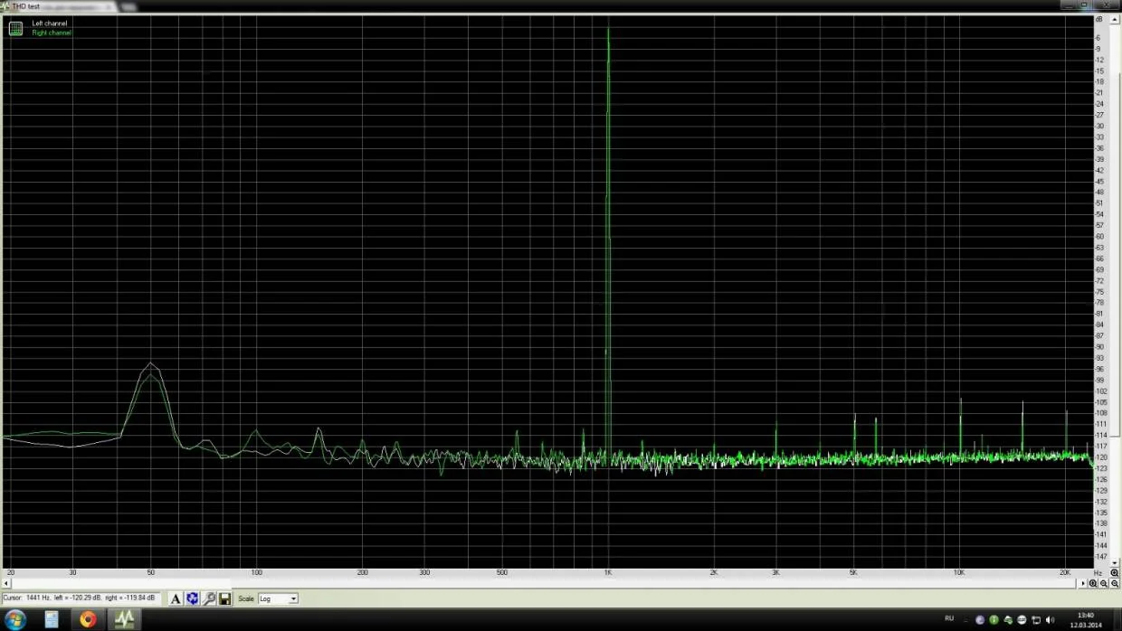 НО! Я нашел проблему. В шоке просто! Наводку давал микрофонный кабель, заменил его витой парой и все измерения пришли сразу в норму. Обнаружил случайно лишь, когда в отчаянии замерил прямо с выходов платы , а не с ушного разъема.
