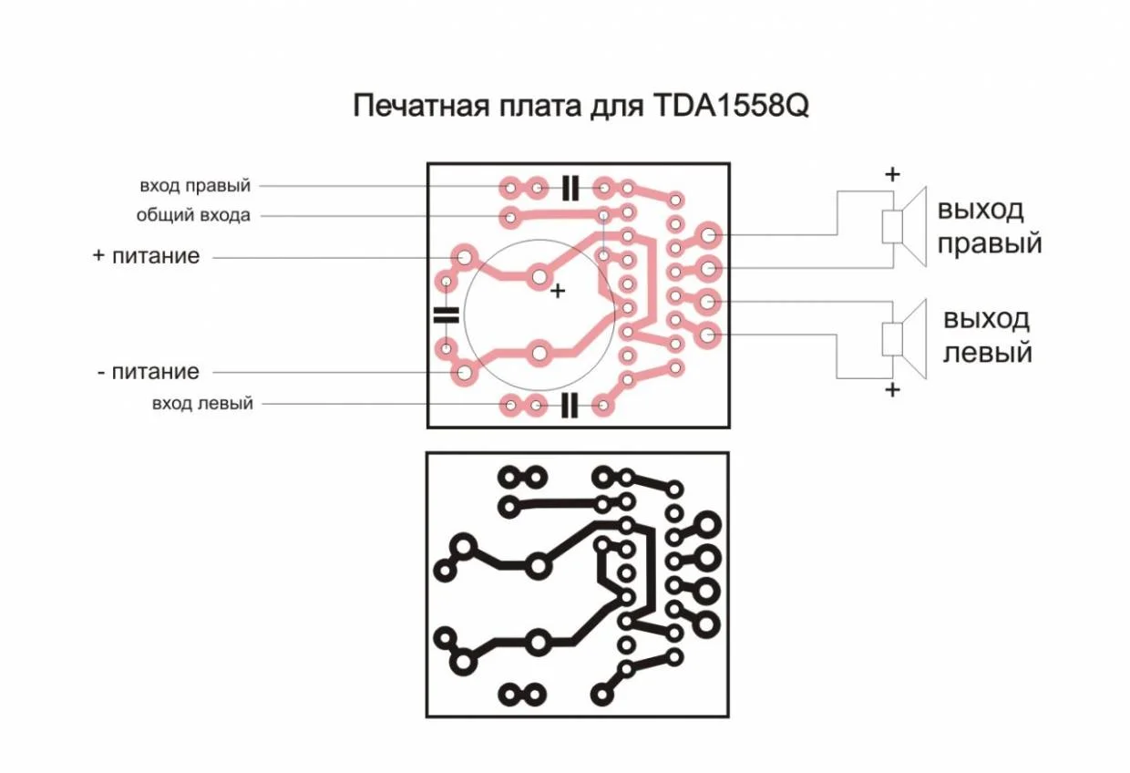 Давно до этого собирал усилитель на 2 канала на микросхеме TDA1558Q(навесным монтажом), звук меня устраивал. Сейчас думаю сделать такой же, только на плате, потому, что я тогда, и сейчас хочу питать усилок от компьютерного блока питания(параметры на фото)