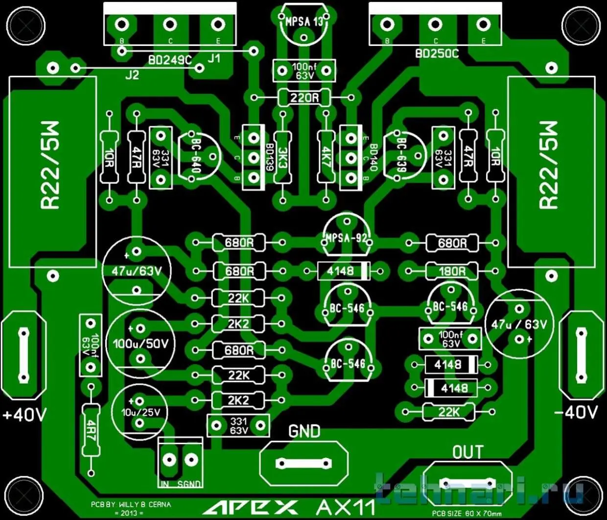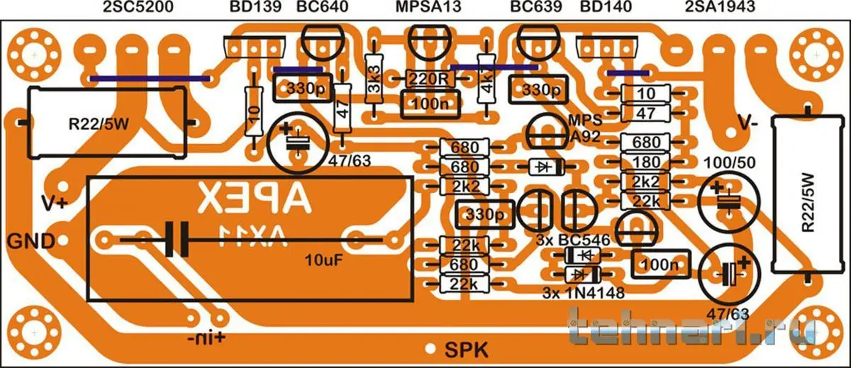 Но транзисторы можно на проводах или снизу припаять зеркально,это уж мелочи,мне главное что бы собрал,включил и вуаля он работает,а не заведомо гнилая схема с печаткой