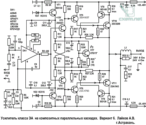 Приветствую всех. Попросили сделать усилитель в ЭА классе. Выбрал эту схему. Автор Лайков