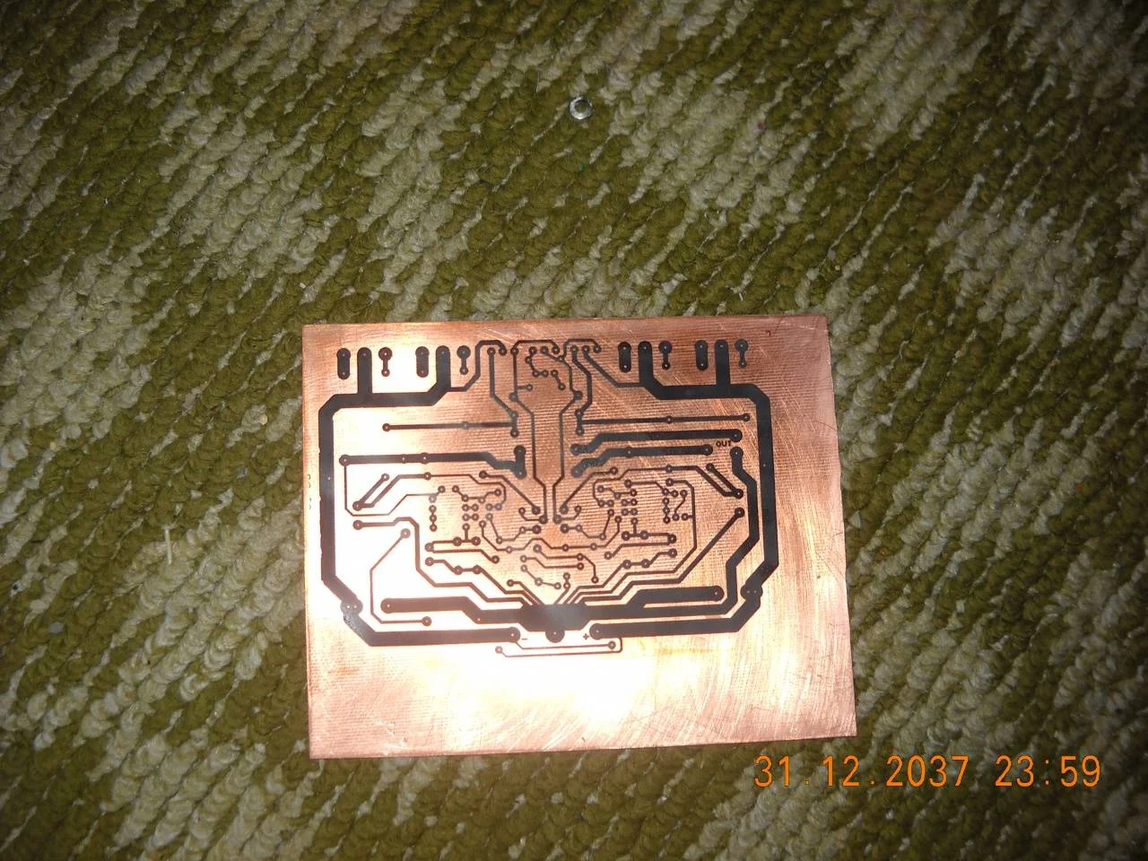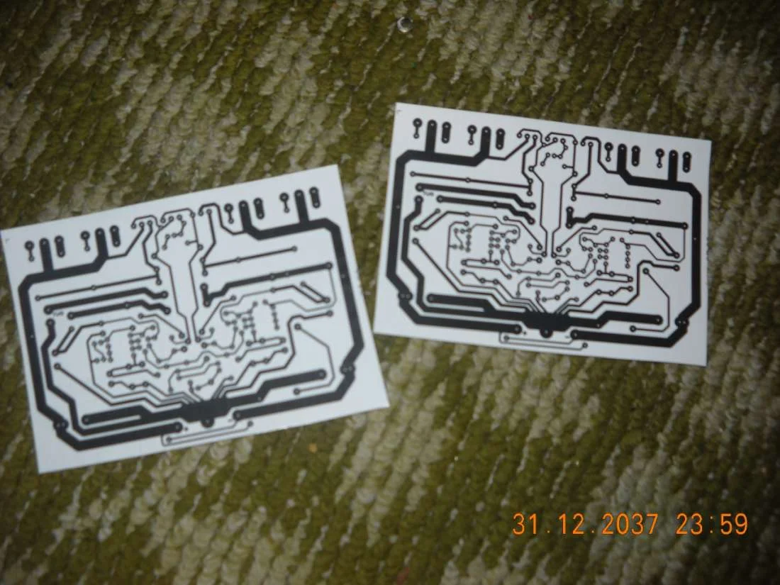 Ну что сходил я сегодня в магазин за текстолитом, и сегодня же перевел рисунок на плату способом ЛУТ, сейчас буду заваривать хлорное железо и завтра уже куплю детали, залужу плату и впаяю детали, ну это пока на первую плату, вторую плату чуть позже сделую. Да и к стати сколько примерно будут стоить все датали на этот усилок( на одну плату т.е моно)