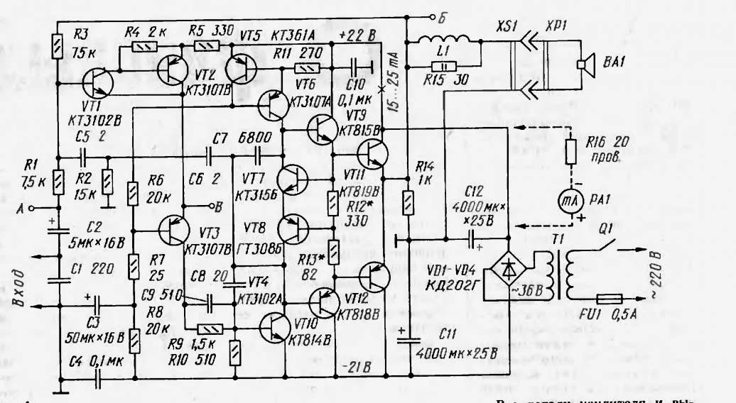 Собрался собрать вот такой усилочек. Понравились его параметры, наличие печатки и относительная простота. Но вот что не понятно : каким образом от одной обмотки трансформатора ( см. схему ) получилось разное питание по плюсу 22 в , а по минусу 21?