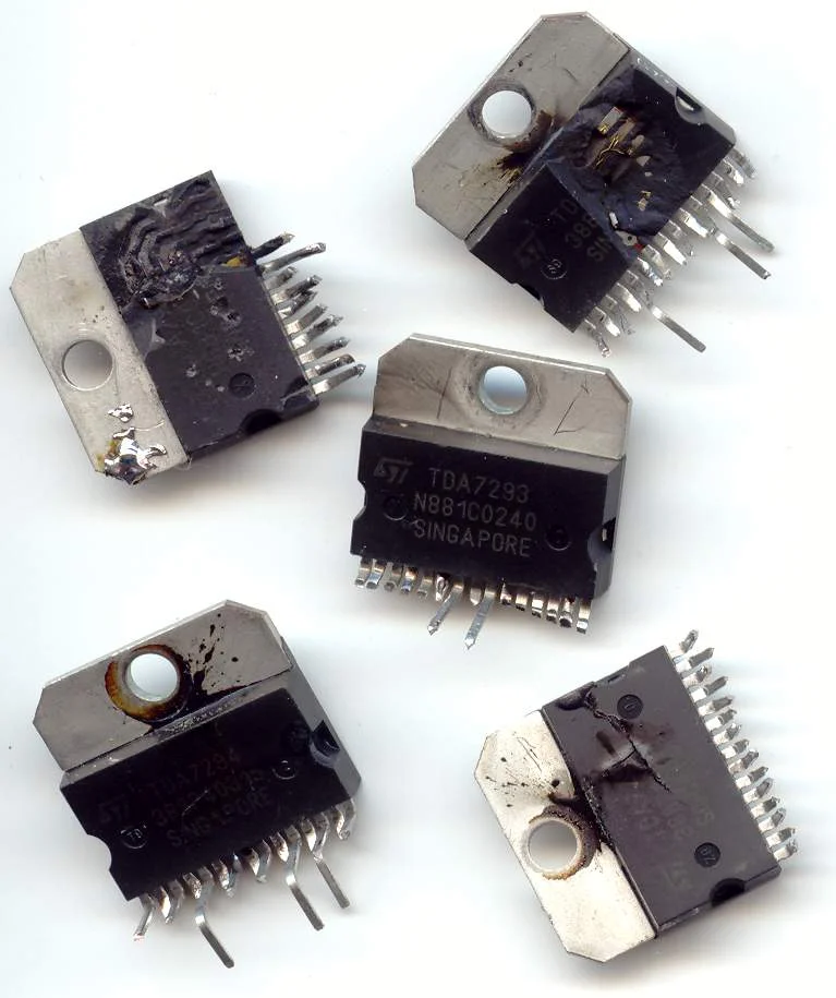 только будьте внимательны, перекос напряжений в плечах не должен превышать 0.2в, 0.5в иначе микросхема эффектно самоликвидируется,примерно как на фото.