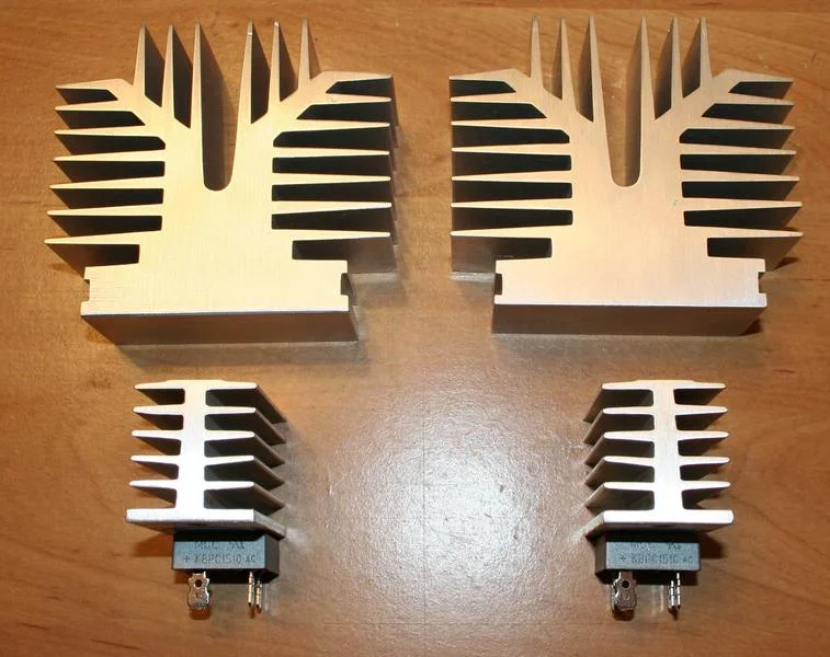 Радиаторы получились по 700см2, питание усилителей будет +/-37В, так как 100 Вт синуса с усилителя тянуть не собираюсь. А нерезаный радиатор слишком габаритный. Для меня, во всяком случае.
